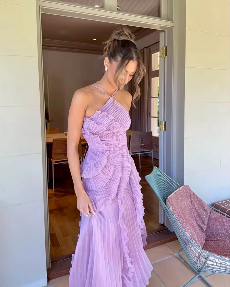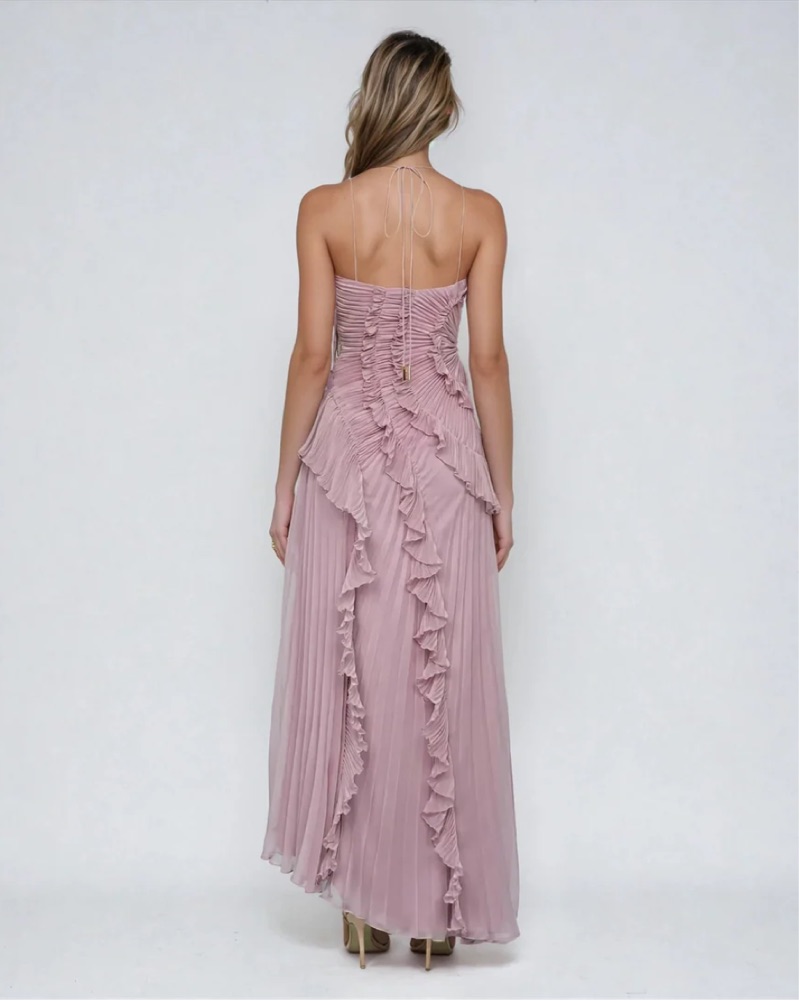 This stunning maxi dress is perfect for a special event or formal occasion. The intricate pleated ruffles add a touch of elegance and drama.