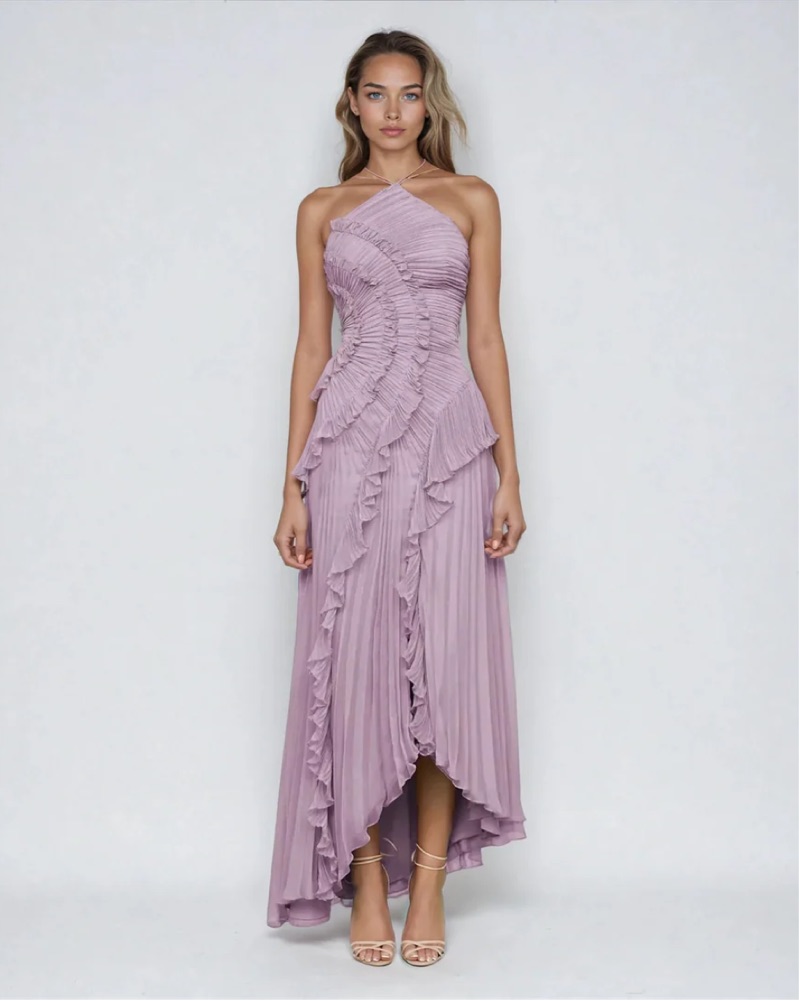 Elegant Ruffle Halter Maxi Dress