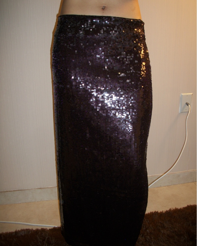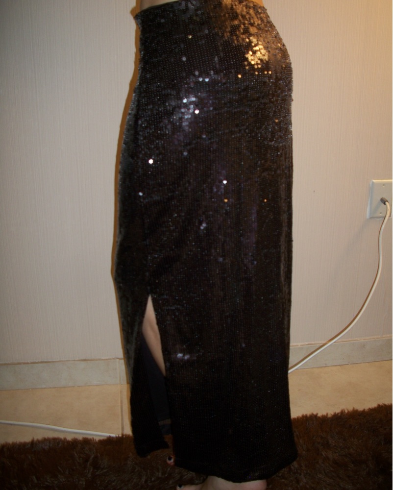 This stunning black sequin maxi skirt is perfect for a glamorous night out. Pair it with a simple top and heels for a show-stopping look. please DON’T wash it- i’ll take care of that!! 🥰