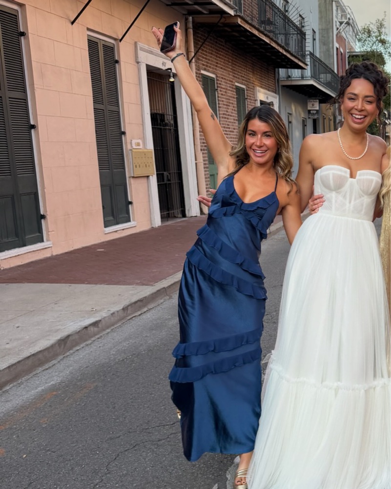 Make a captivating entrance in thr Inara Navy Ruffle Maxi Dress, the perfect piece for your next special occasion! The cascading ruffle tiers create a fluid, ethereal silhouette that’s sure to turn heads