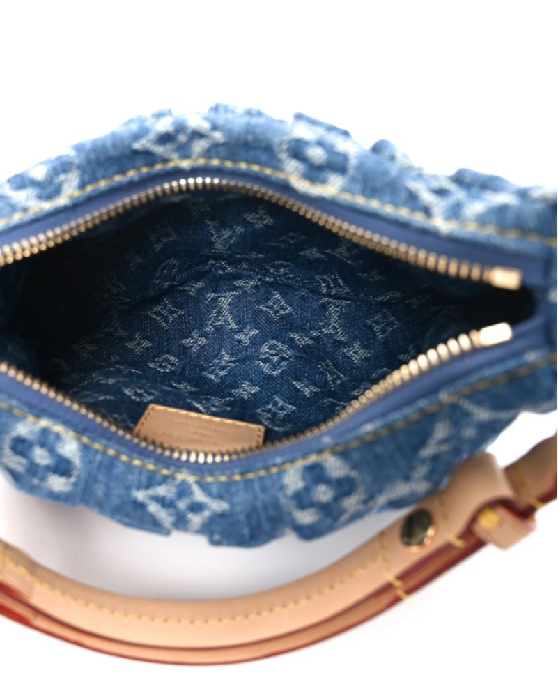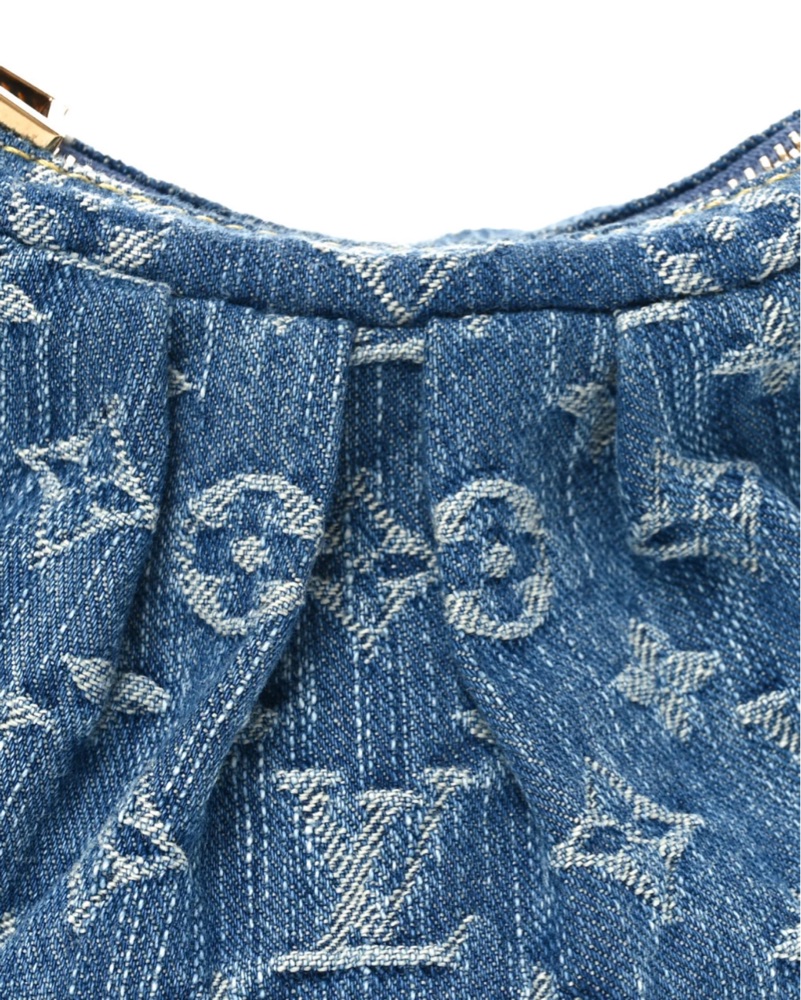Elevate your style with this chic denim hobo bag featuring a signature monogram print. Versatile and perfect for everyday use. Louis Vuitton valley pochette denim