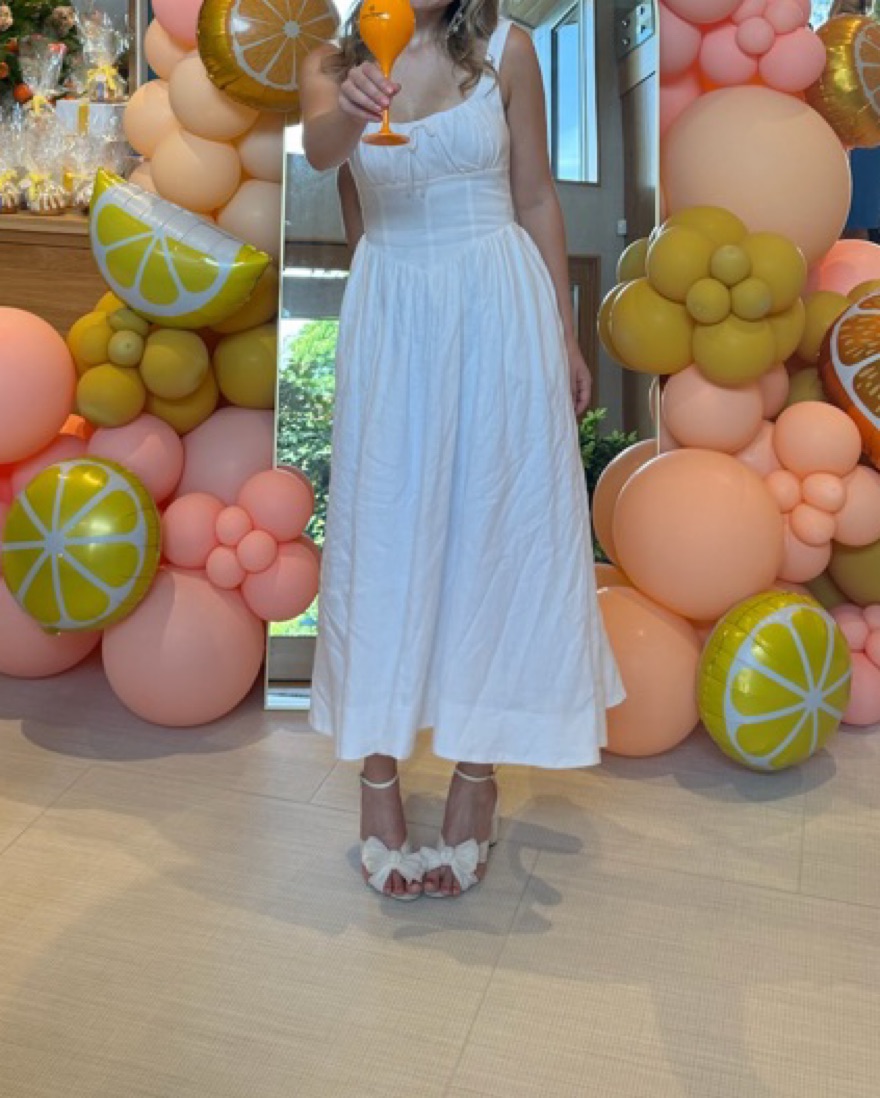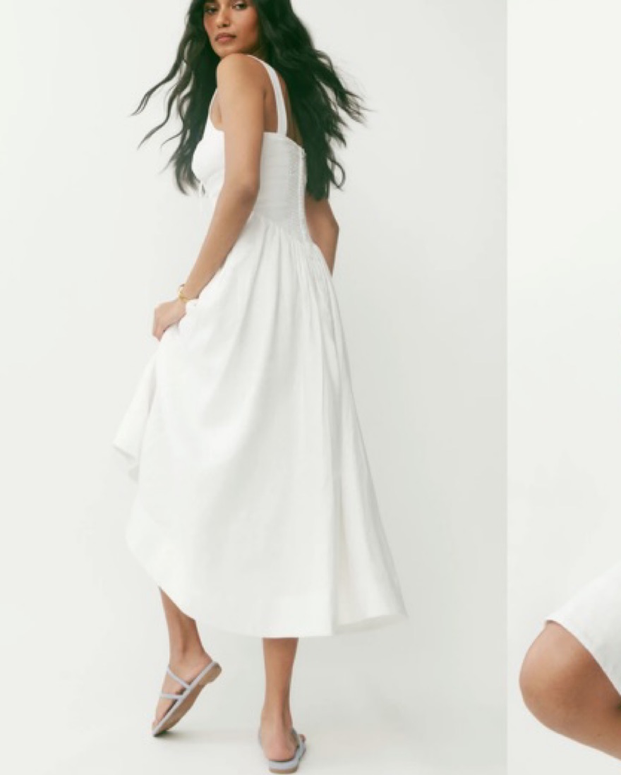 Reformation Balia Linen Dress Designed to be fitted at bodice with a full skirt. The details