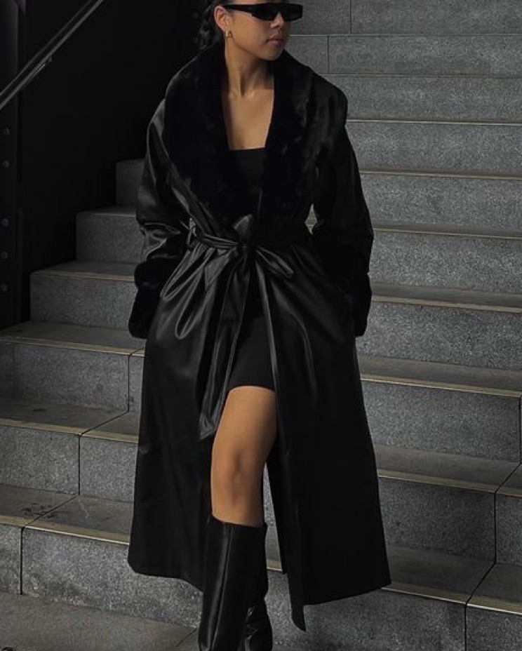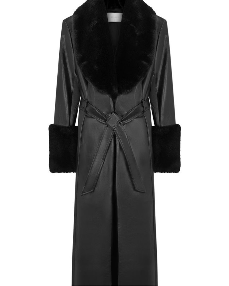 Meshki Leather And Fur Long Coat by Meshki - Pickle