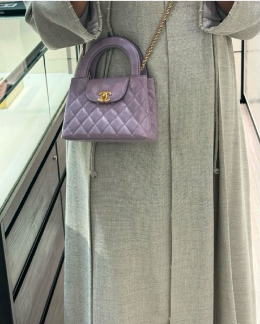 Exquisite Chanel quilted lambskin handbag in a stunning lavender hue. Featuring the iconic Chanel logo and chain strap for a sophisticated, high-fashion look. 7.5” by 5” fits a regular iPhone. Tags: handbag, purple, Chanel, luxe, going out, party, lilac, lavender, date night.
