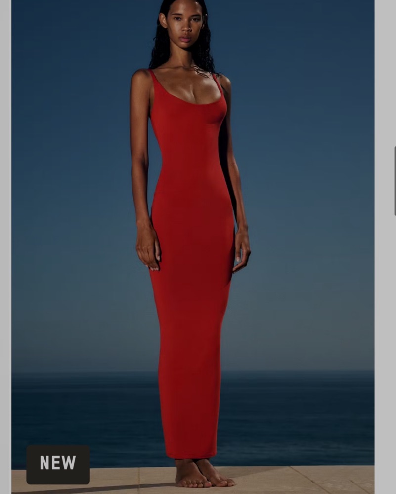 Skims Red Scoop Neck Dress