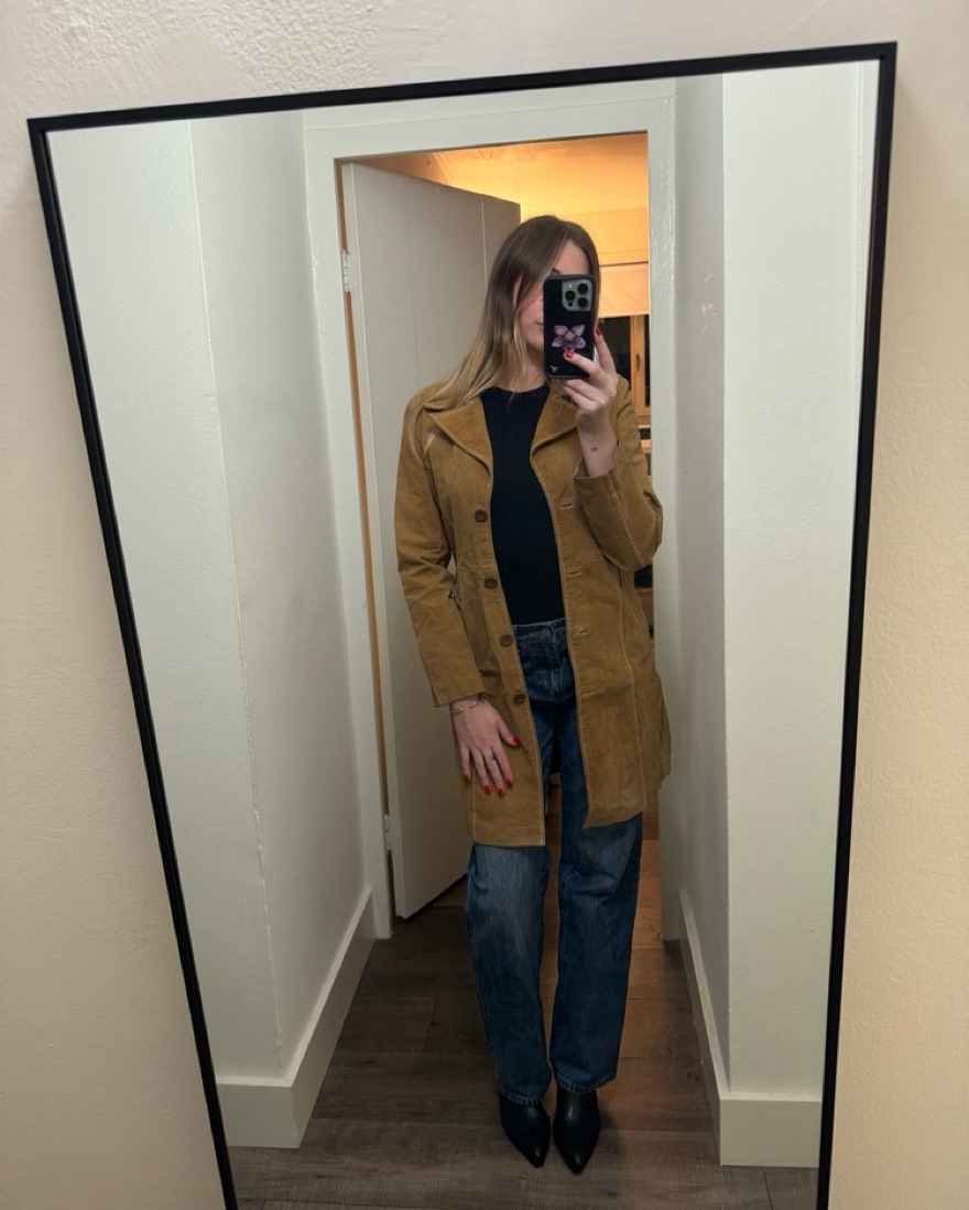 Chore / Utility jacket, super unique, got at a vintage store. Mustard color, very chic, one of a kind.