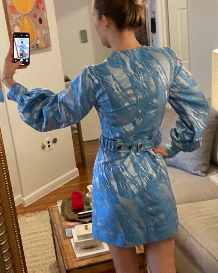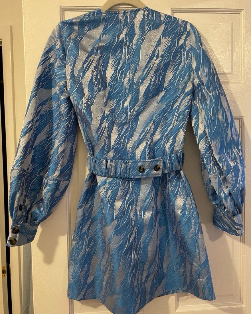Ganni Blue Marble Long Sleeve Mini Dress