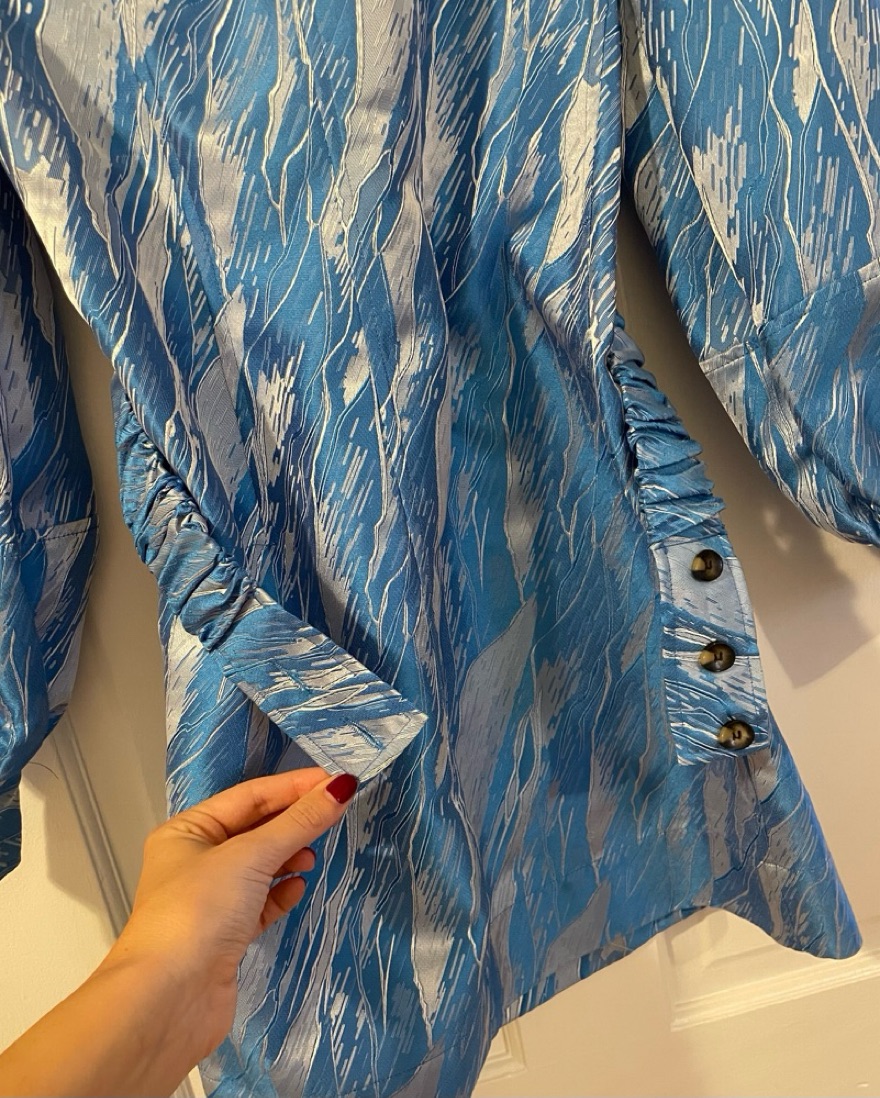 Ganni Blue Marble Long Sleeve Mini Dress by Ganni - Pickle