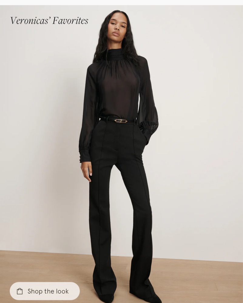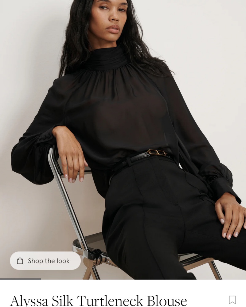 This sleek and sophisticated black silk blouse is a timeless wardrobe staple. Its elegant high neckline and voluminous bishop sleeves create a refined, yet modern look perfect for the office or a night out. She’ll is made of 100% silk and comes with under cami