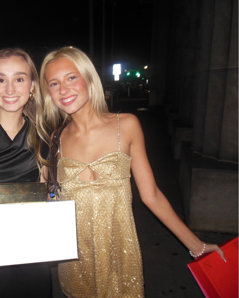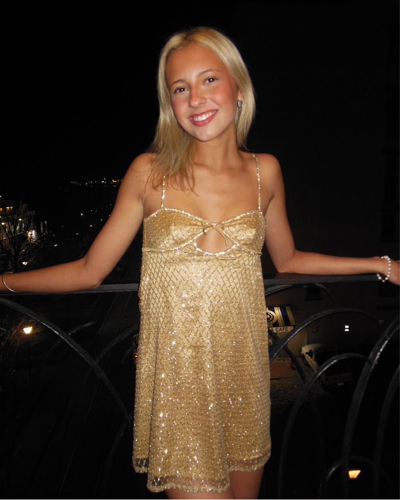 Beautiful and elegant gold glitter slip dress! Perfect for birthday dinners, date nights, formals, or any special occasion!