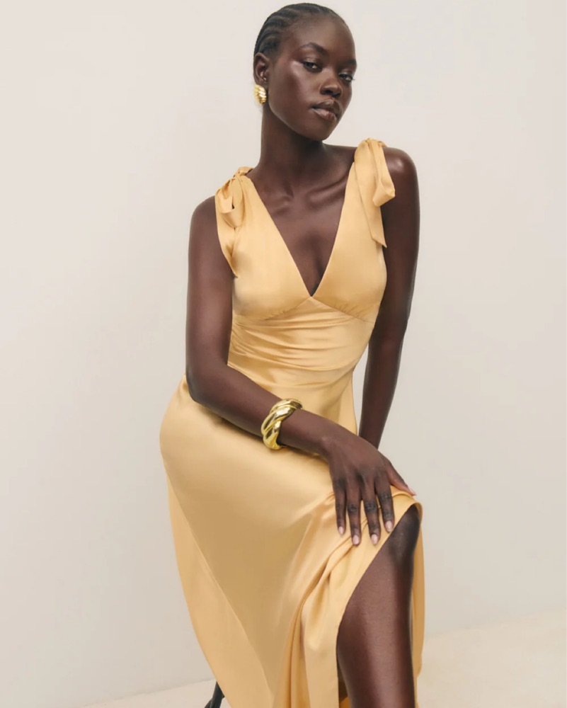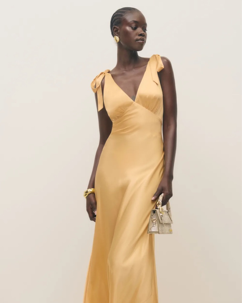 Think ‘How to lose a guy in 10 days’ meets golden globe, this dress is stunnnnning. Wore once to a wedding. Size XS. Adjustable straps, and silky high quality material. I ironed it just before the event to make sure there were no wrinkles!
