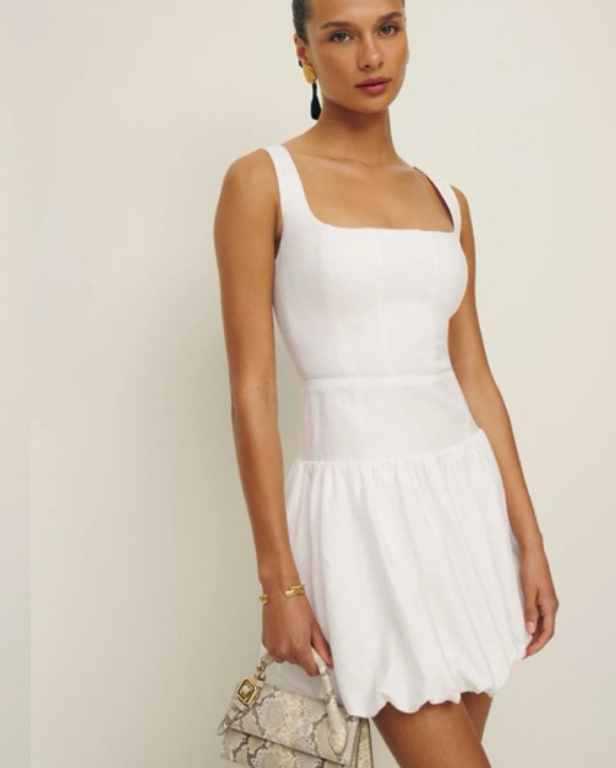 Reformation Delia Linen Dress in White by Reformation - Pickle