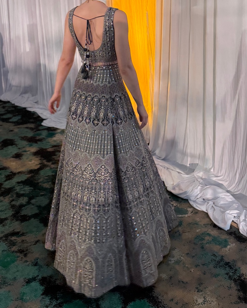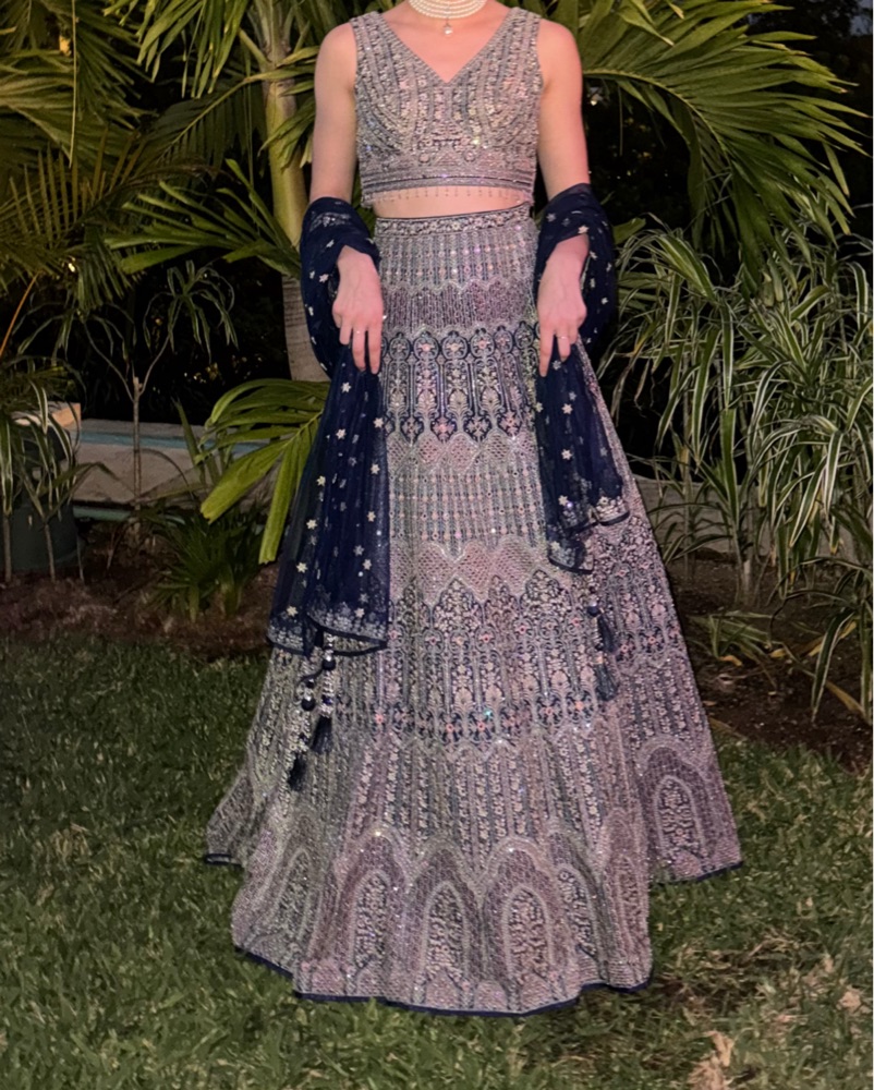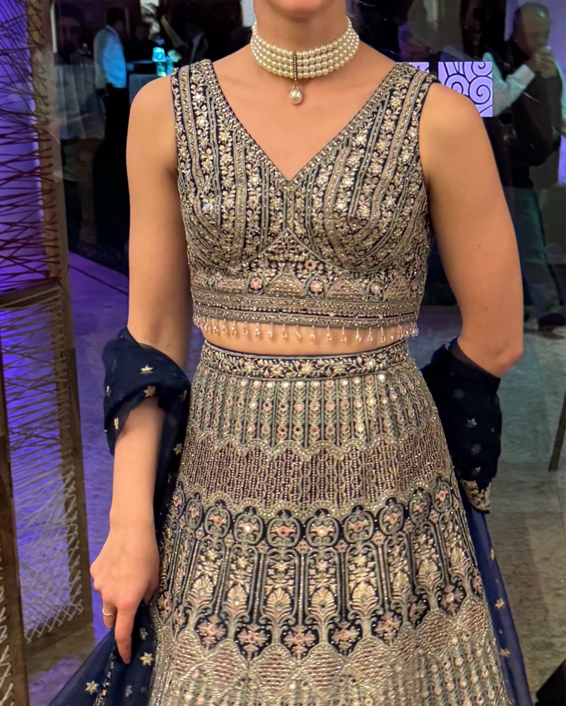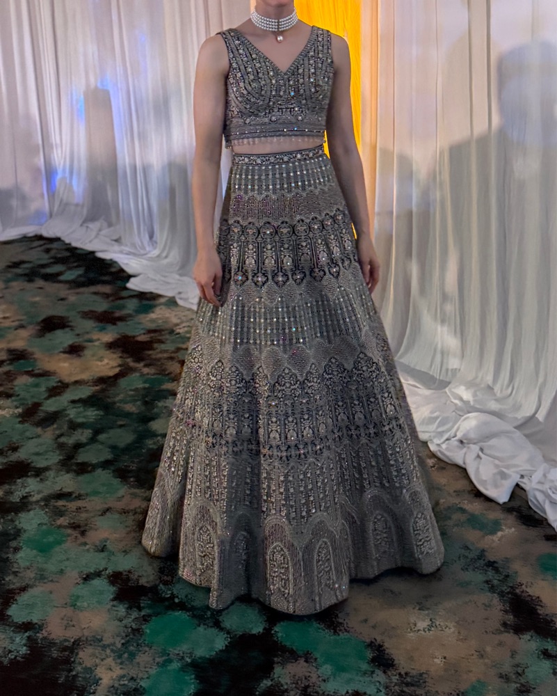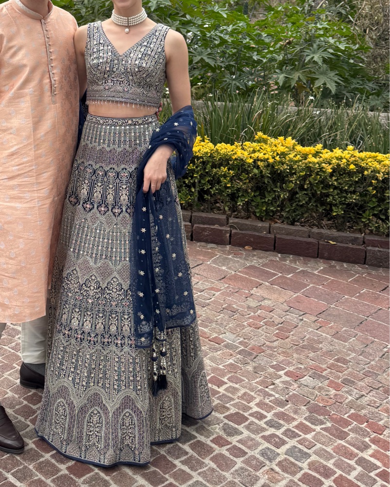 This luxurious lehenga is perfect for a glamorous occasion like a wedding or high-profile event. The intricate embroidery and beading add a stunning, regal touch.