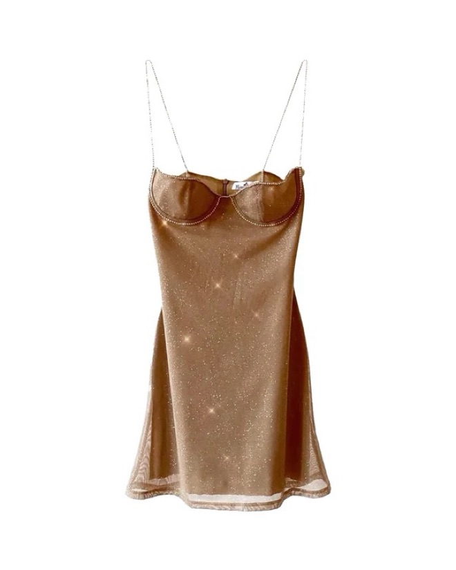Stuning Mirror Palais Fairy Dress in Gold / Nude