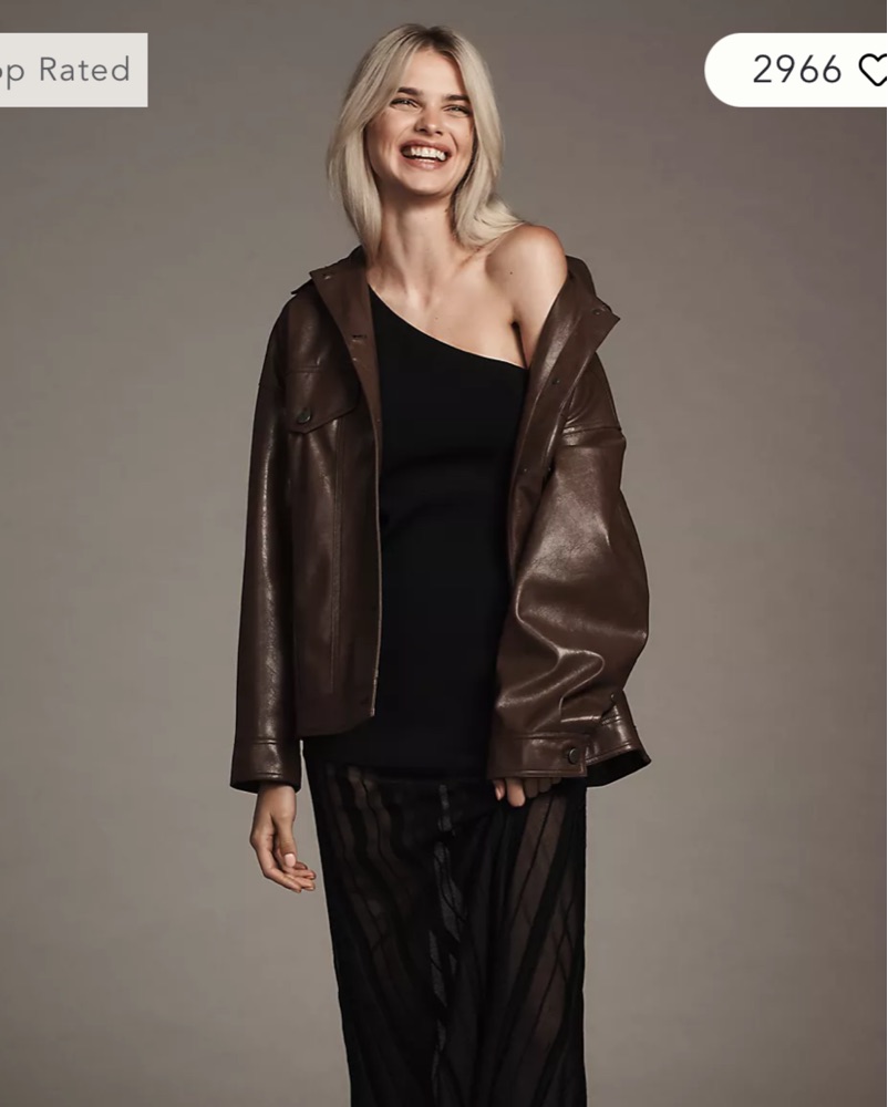brown faux leather oversized boyfriend jacket - anthropologie 🤎