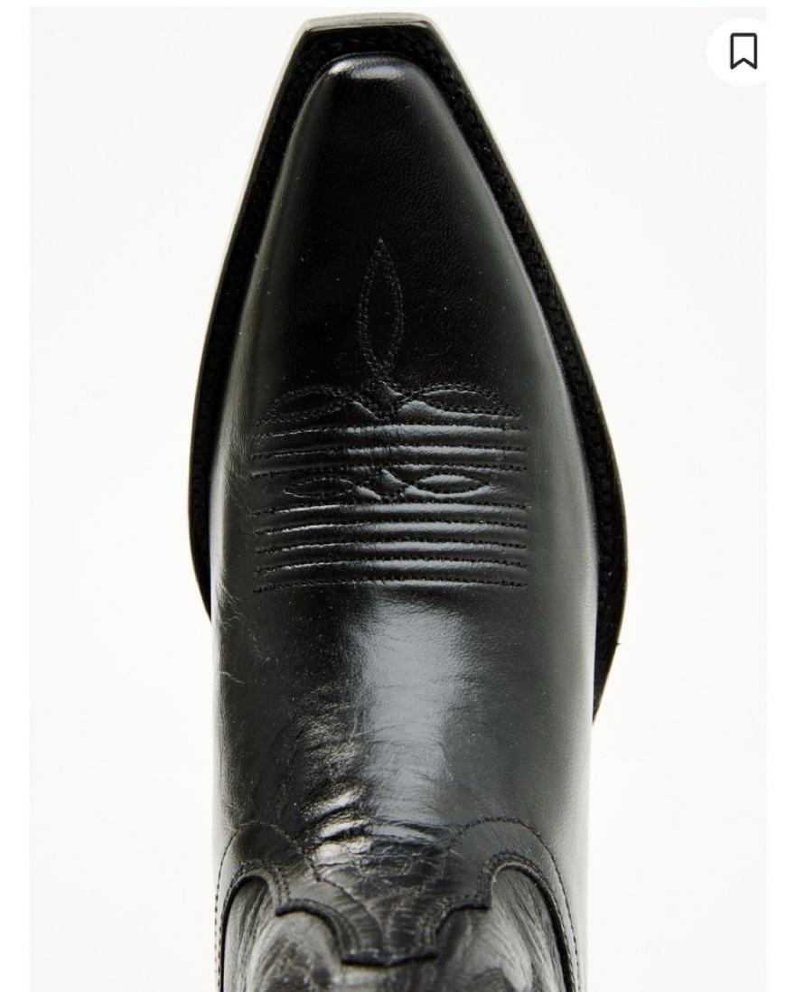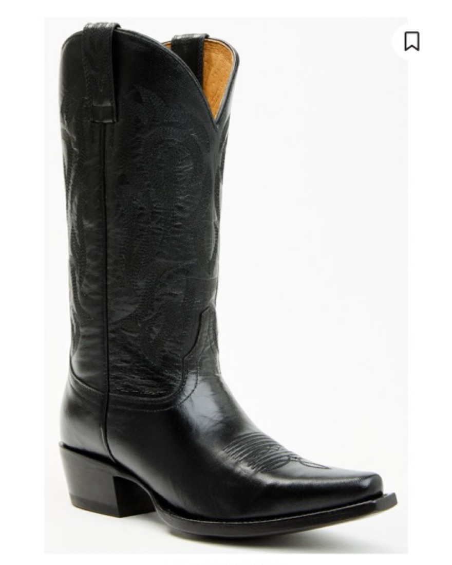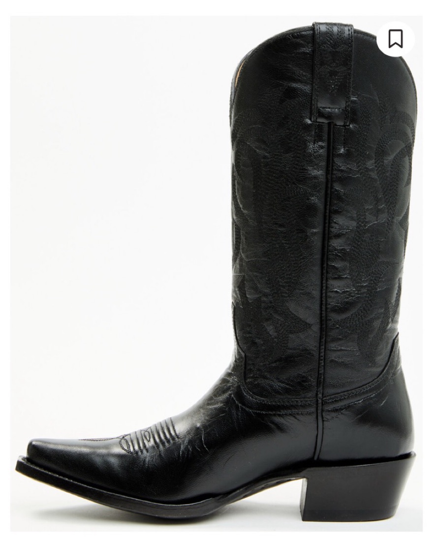 Chic black leather cowboy boots. These are legit, high quality leather boots. Look so cute with tights and a mini skirt/dress.