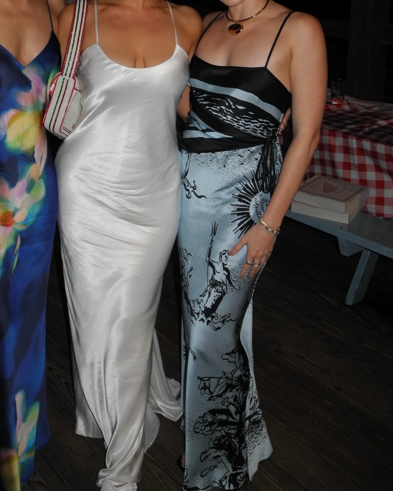 Size 2 which equates to a 6/size medium. Not fitted but perfect fit for a size 6 and a bit flowier for size 4. Hits the floor for me with 2 inch heels and I’m 5’5. Great party dress or rehearsal dinner dress. *scarf is removable, but would prefer you don’t remove so you don’t lose it, thank you*