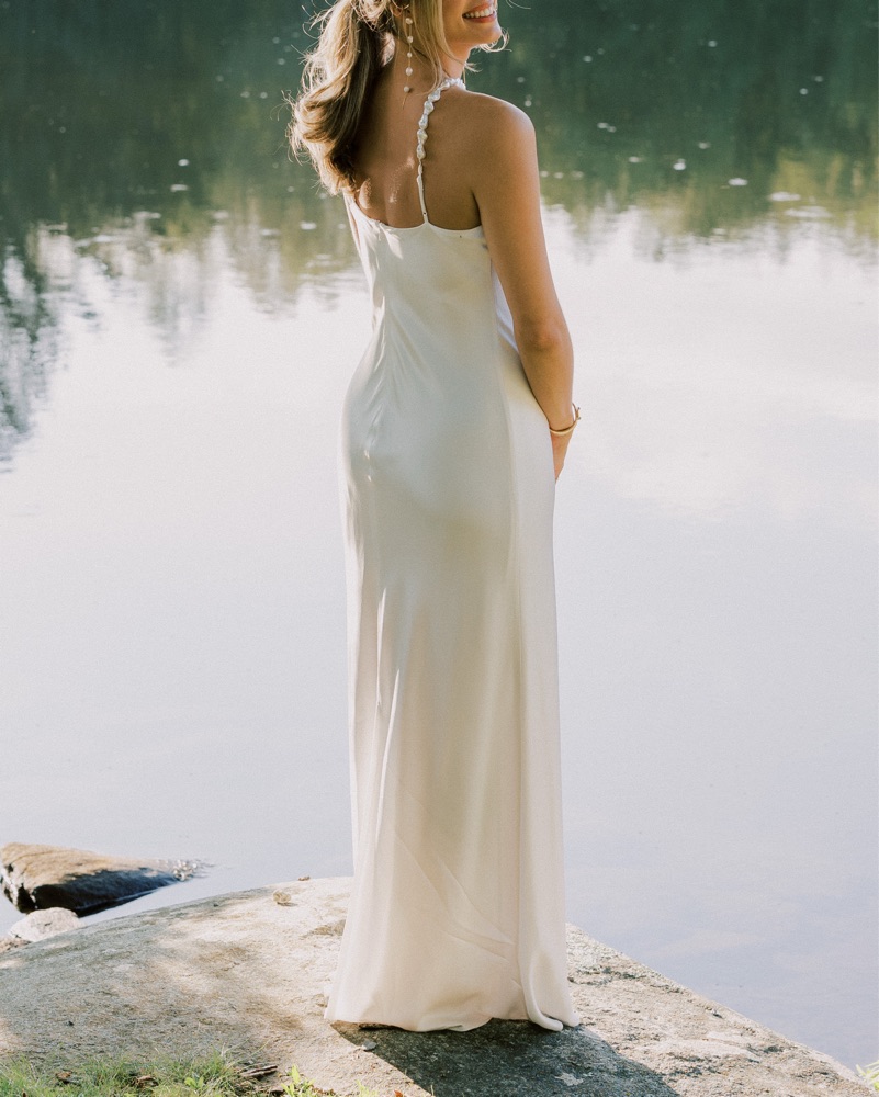 Cadence halter dress in Pearl. Size 6, fits TTS. Only worn once, no alterations made. Perfect for any bridal event!