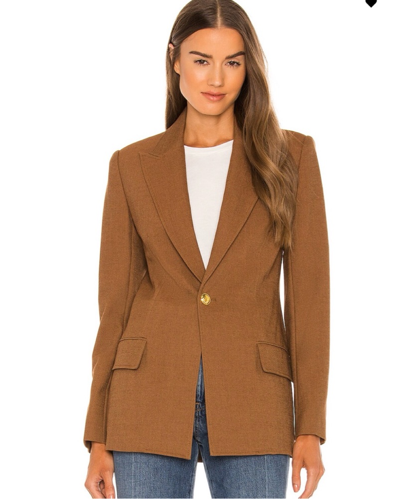 Sophisticated tailored A.L.C. blazer in cashew brown with gold buttons. Lightly padded shoulders. Excellent condition.