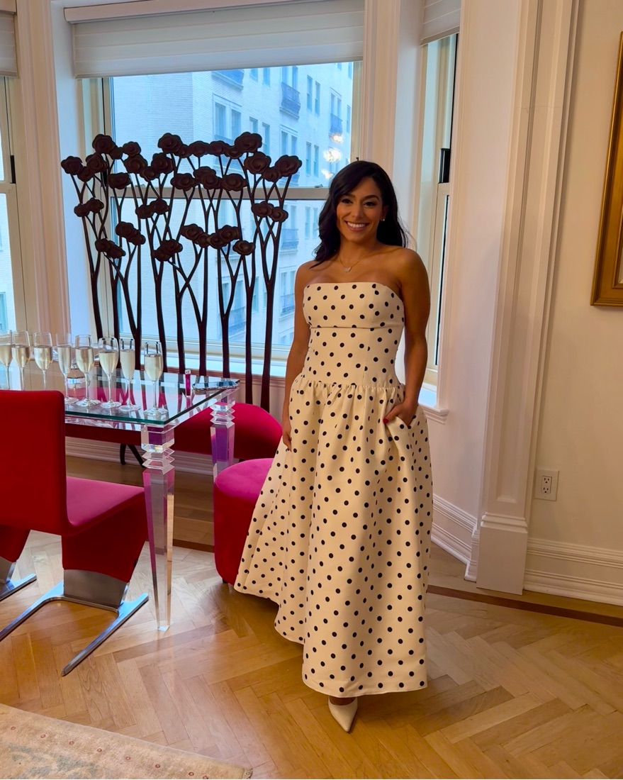 Drop waist style that poofs out by the hip (has some crinoline lining underneath ). Had to order UK10 (US Medium) for chest, but had waist taken in (fits more Small-Medium). Inside the dress before the zipper there are adjustable multiple rows of bustier hooks to make smaller or bigger as needed!