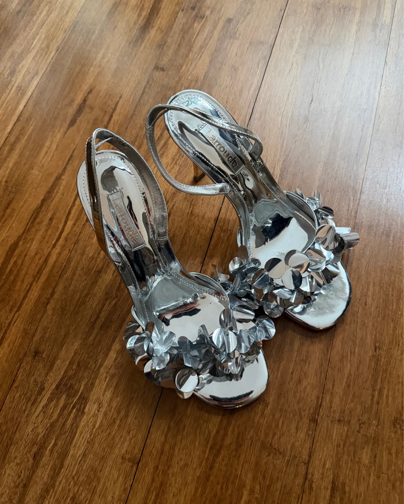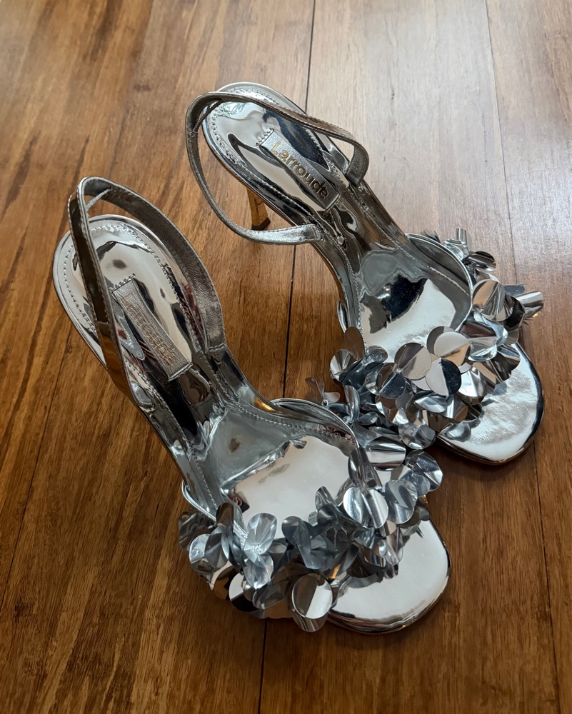 Larroude Silver Confetti Heels