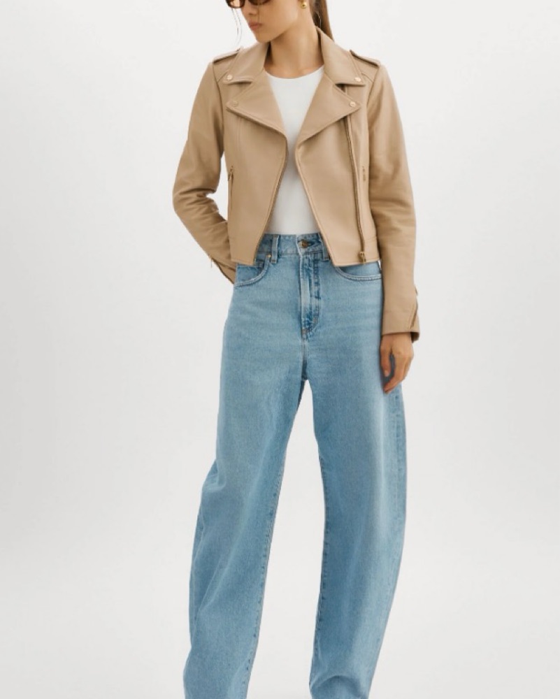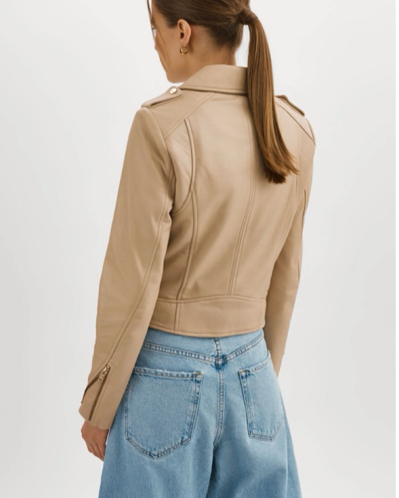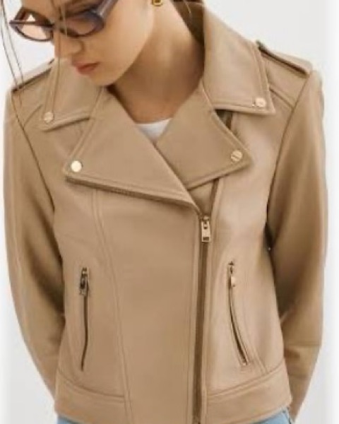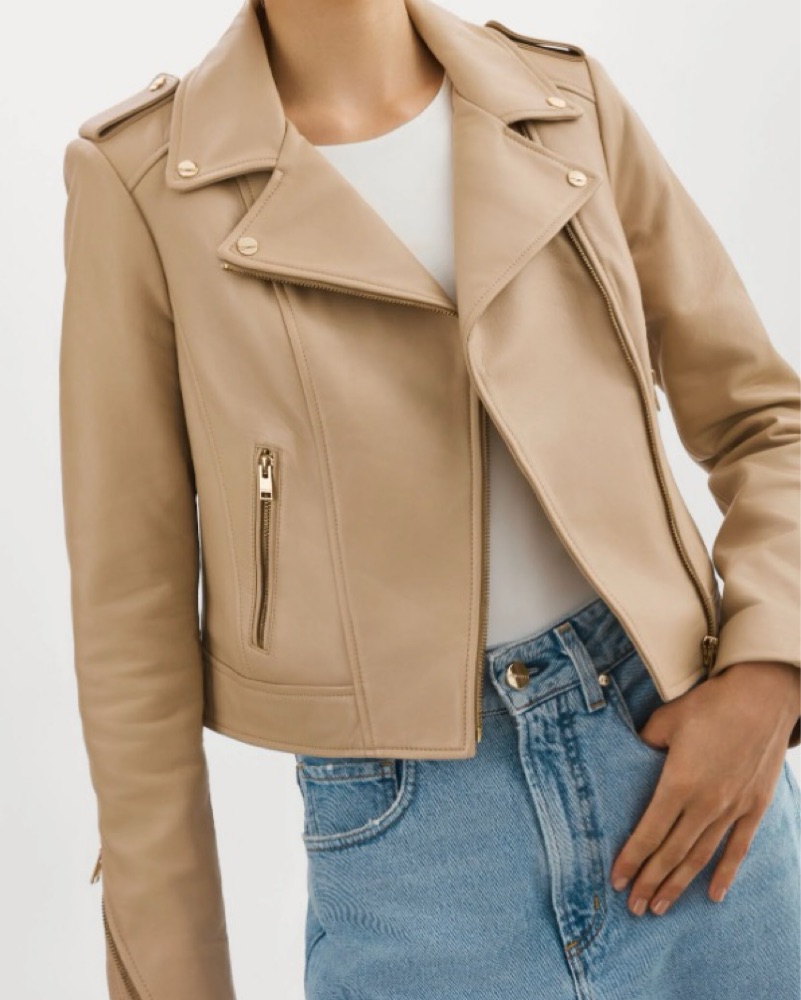 LaMarque tan Leather Biker Jacket by LaMarque - Pickle
