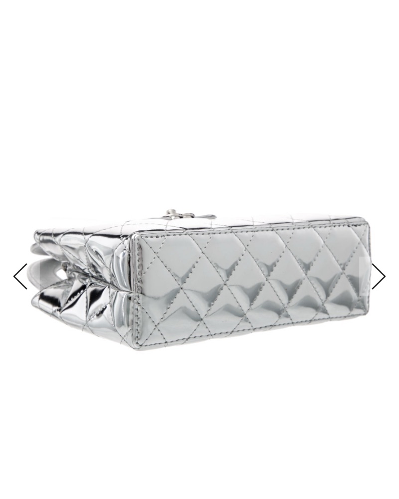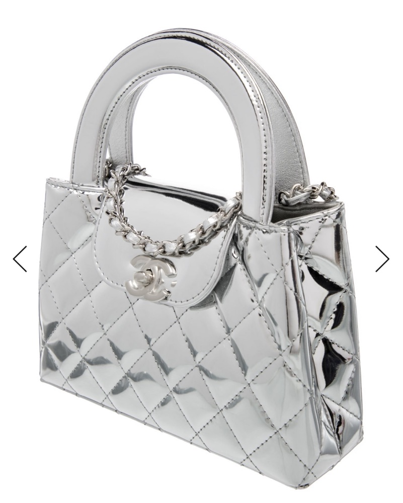 Cruise 2026 mirrored silver Kelly. Interlocking CC Logo, Quilted Pattern & Chain-Link Accent Silver-Tone Hardware Cutout Handles & Chain-Link Shoulder Strap