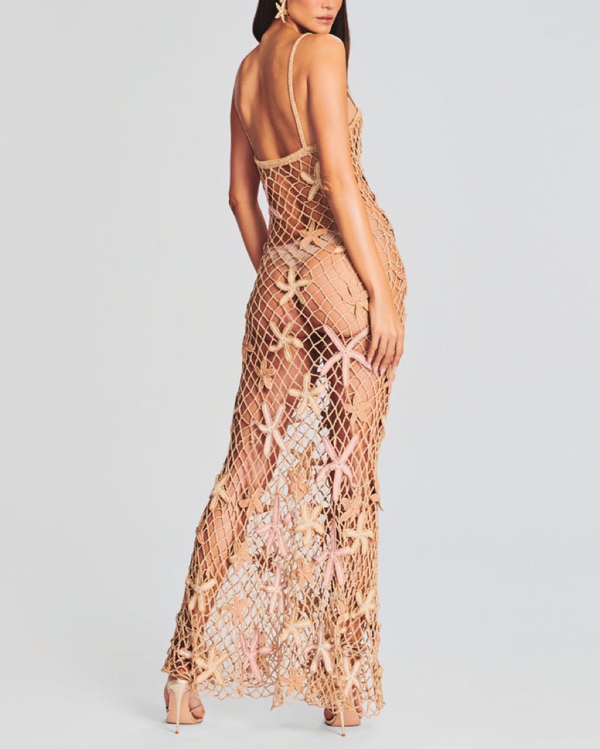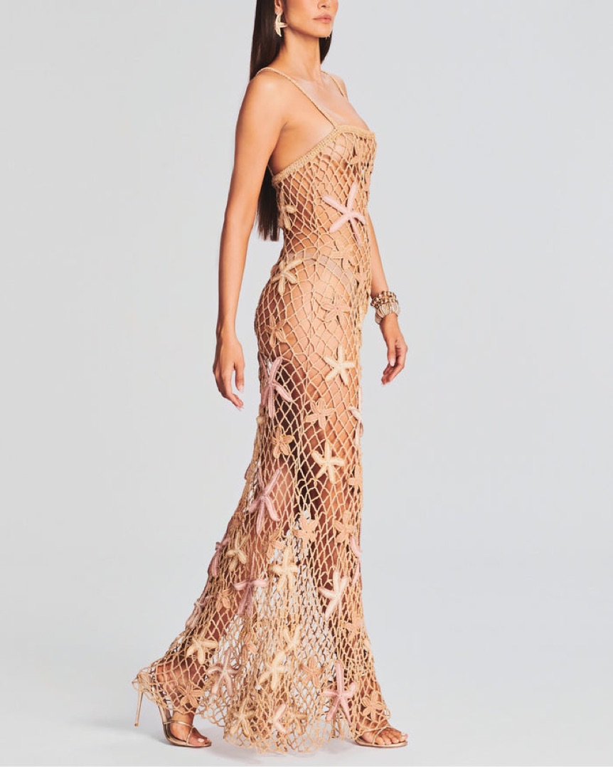 This captivating crochet dress is a showstopping choice for a special occasion. The intricate seashell design and figure-flattering silhouette make it a chic and elegant option.
