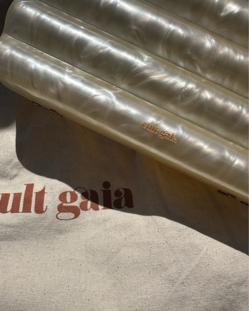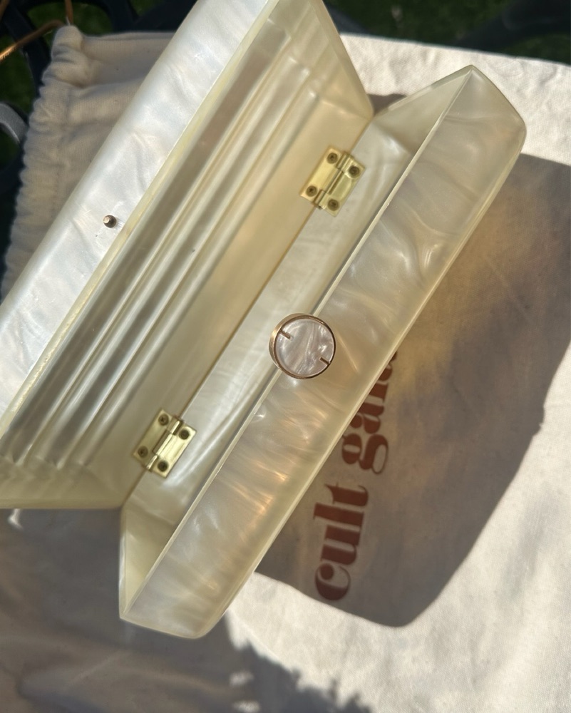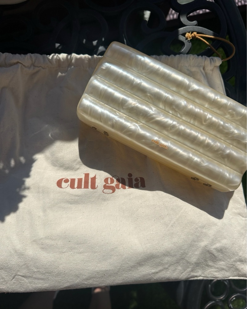This brand new and never been used statement Cult Gaia clutch is perfect for a night out or a special occasion. Its unique molded acrylic design adds a touch of glamour to any ensemble.
