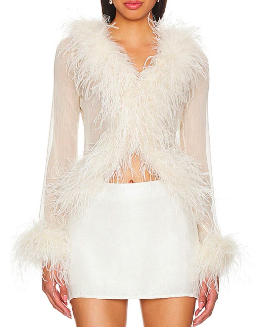 Bubish Gigi Feather Blouse White by Bubish - Pickle