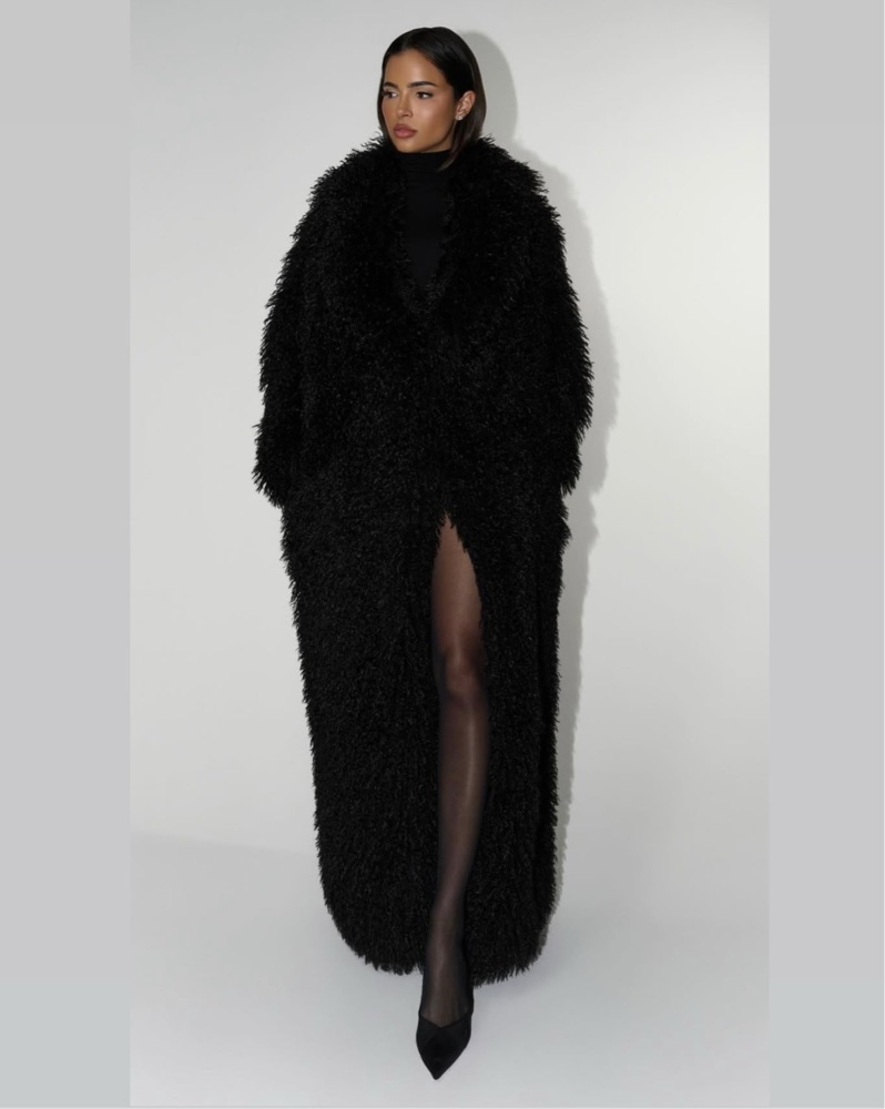 FAUX FUR PLUSH LONG COAT. Im 5.3 its all the way to the floor with no heels