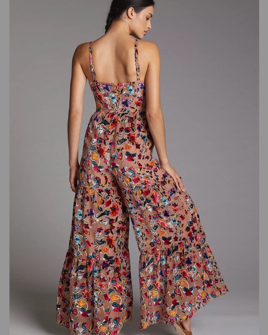 Hutch Velvet Floral Jumpsuit Flare by Anthropologie - Pickle