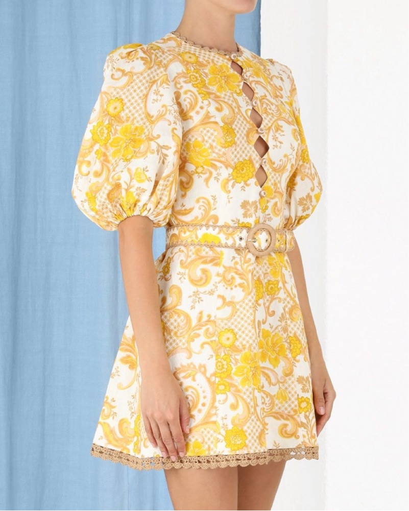 Size small 2/4 - Eye-catching floral Zimmerman mini dress perfect for brunch, vacation, drinks and more. The puff sleeves and cinched waist create a flattering, feminine silhouette.