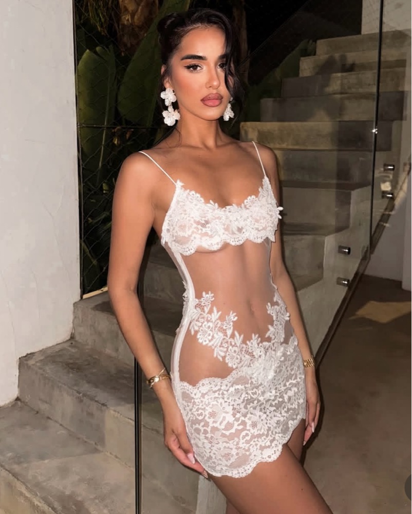 MUST RETURN CLEAN (if you get tan or makeup on you are responsible for dry cleaning before sending back) size Small - fits 2/4 potentially slim 6. Dress is a sample made custom! Tagged MP for exposure