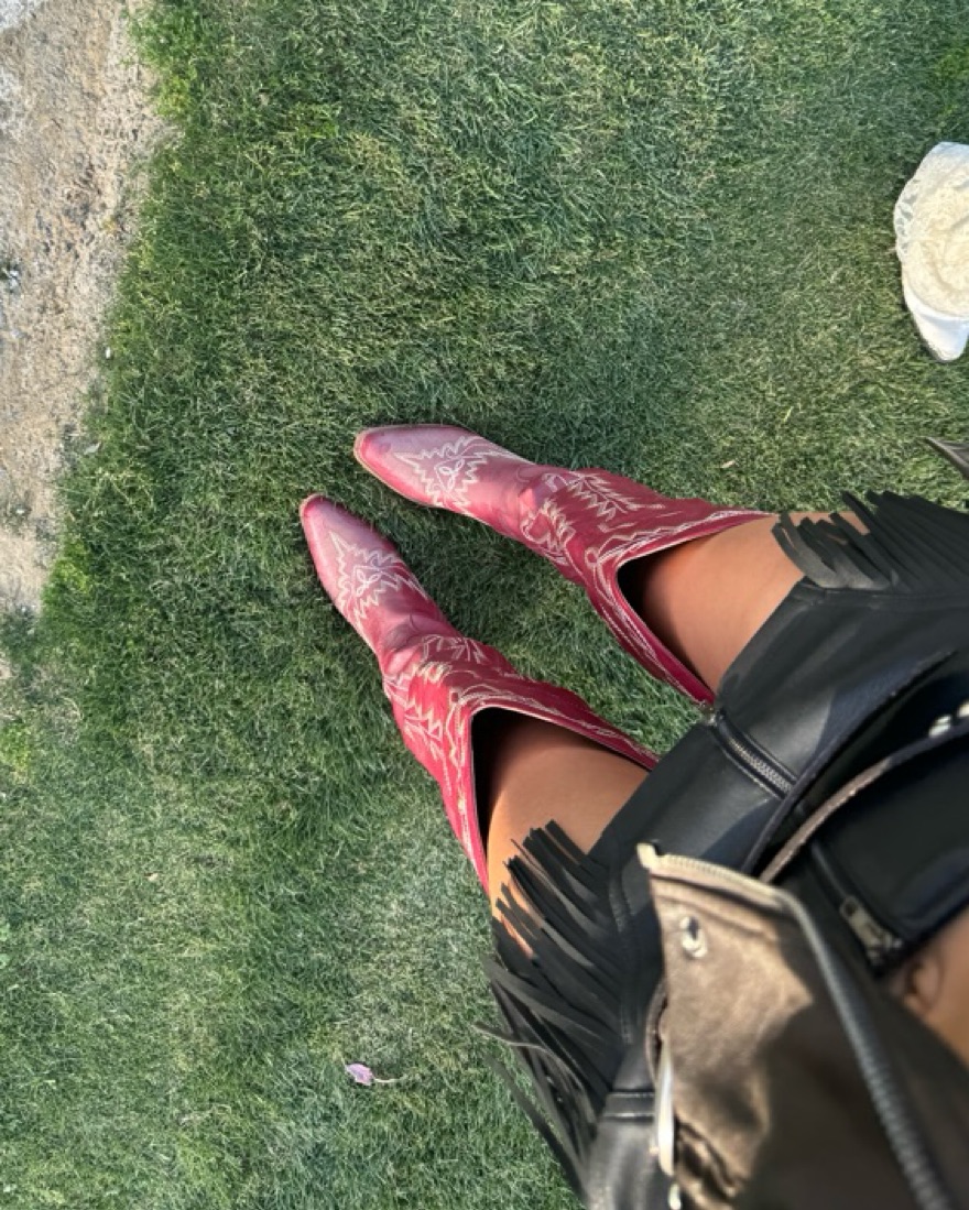 Thigh high red cowgirl boots