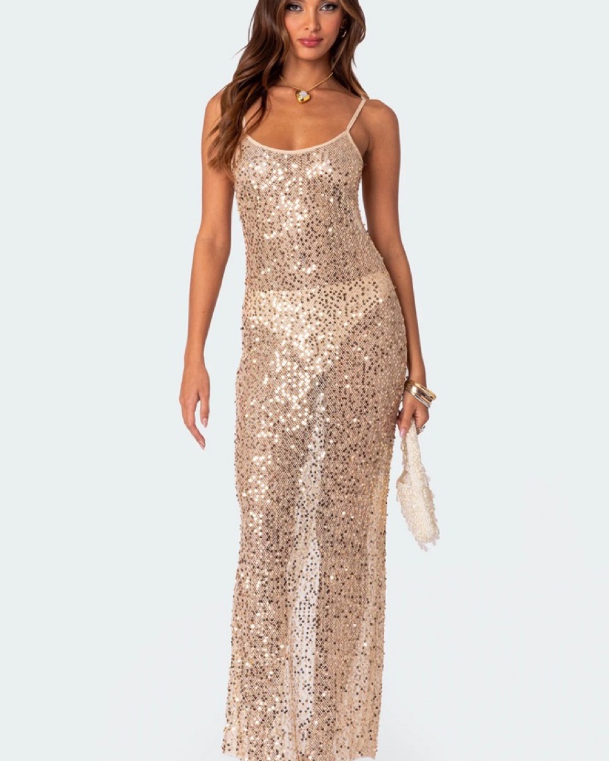 Sequin Sheer Mesh Maxi Dress