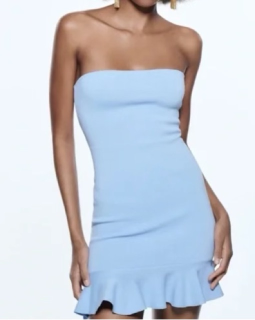 Zara strapless mini blue dress
