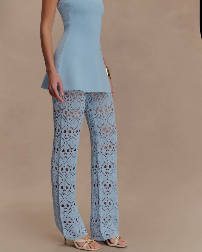 The Anette bandage top pairs with the Trena crochet pants!! Pants perfect for tall girls. I didn’t have time to alter them so I rolled the pants up.