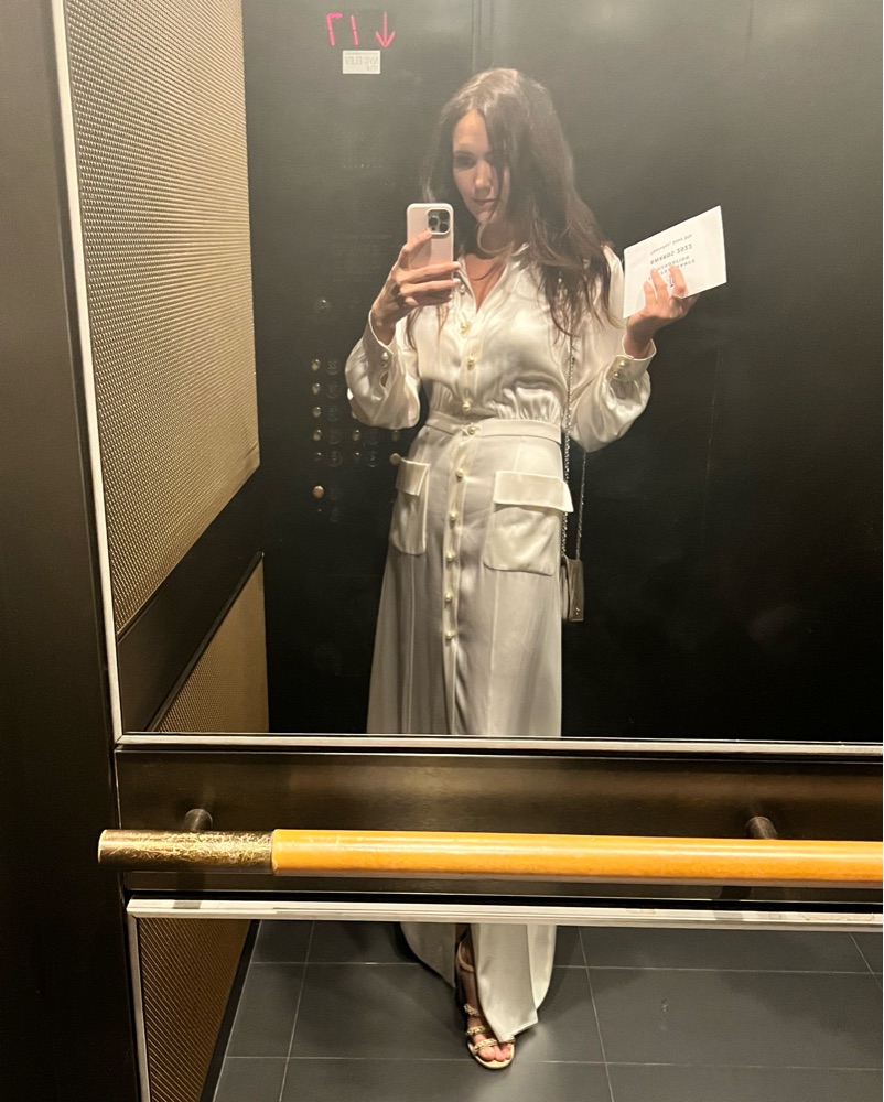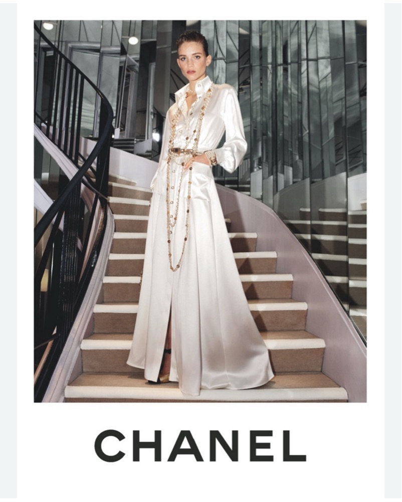 Chanel Métiers d’Art 20A size 36. Stunning 100% silk ivory gown that walked the runway. Morgan Stewart wore it for her wedding, fun fact. Very precious, delicate dress that needs to be handled with the utmost care. Dry cleaning required.