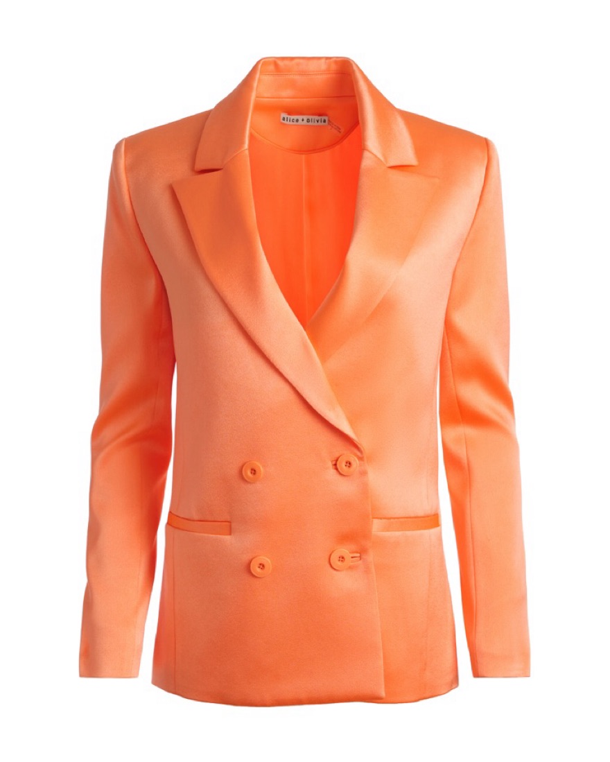 A classic double breasted design and this one, with an oversized fit, is such a cool way to wear one. Santos includes a small lapel, notch collar, and an unexpected shade of coral