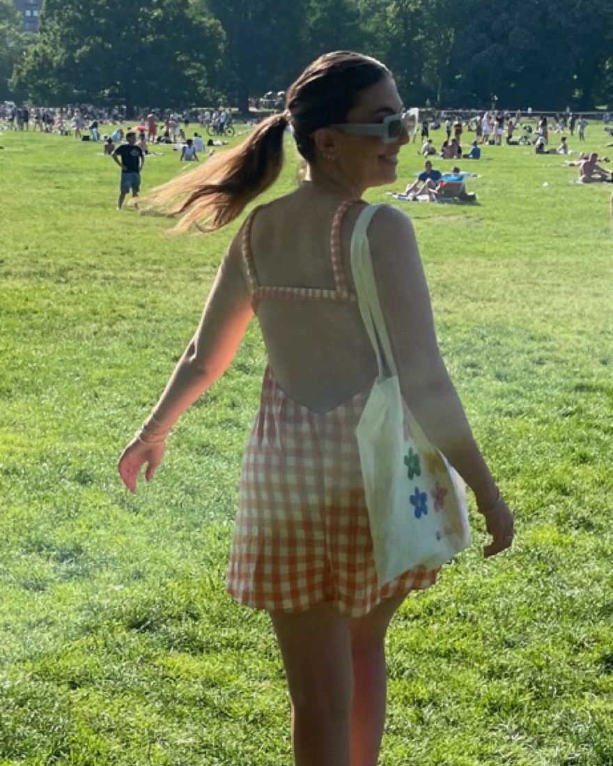 Orange Gingham Backless Romper