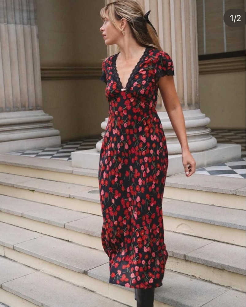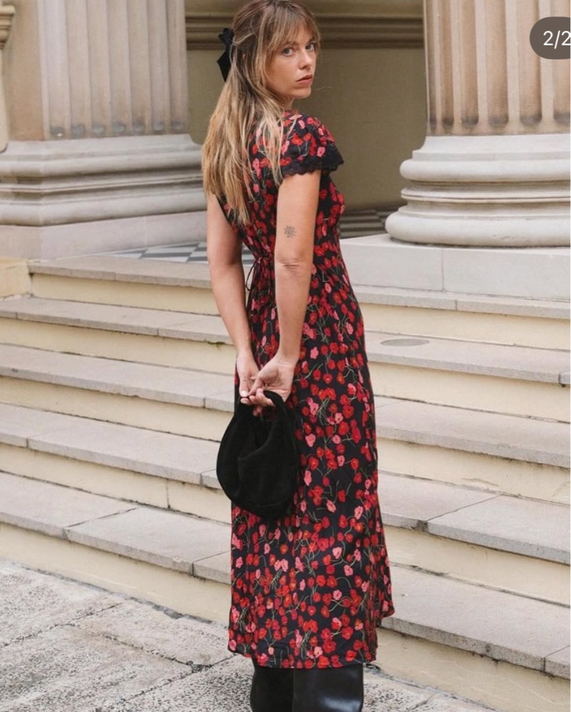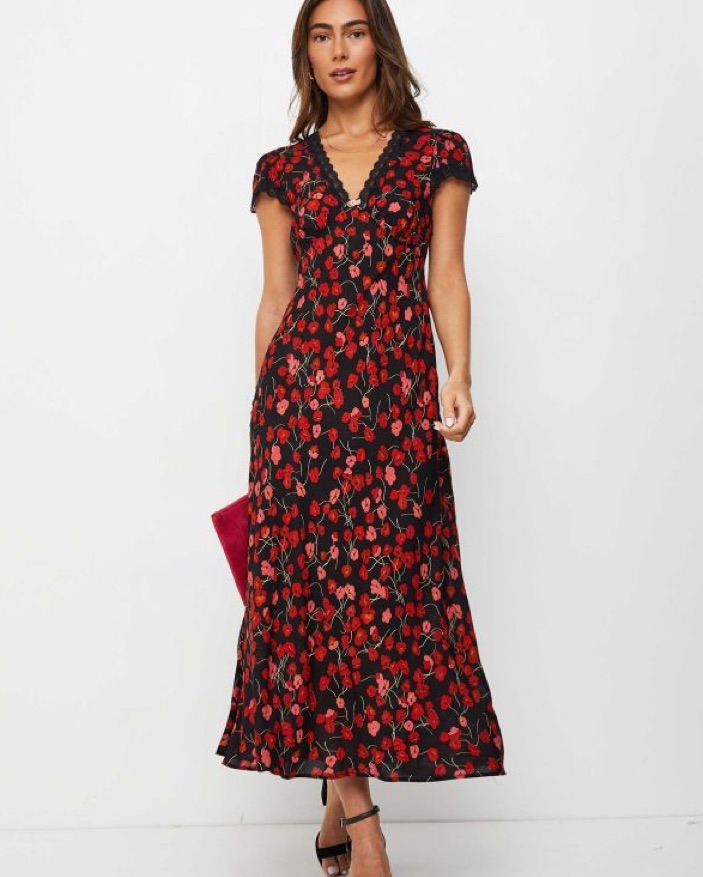 Rixo Clarice Autumn Cherry Red floral print with lace trim detail