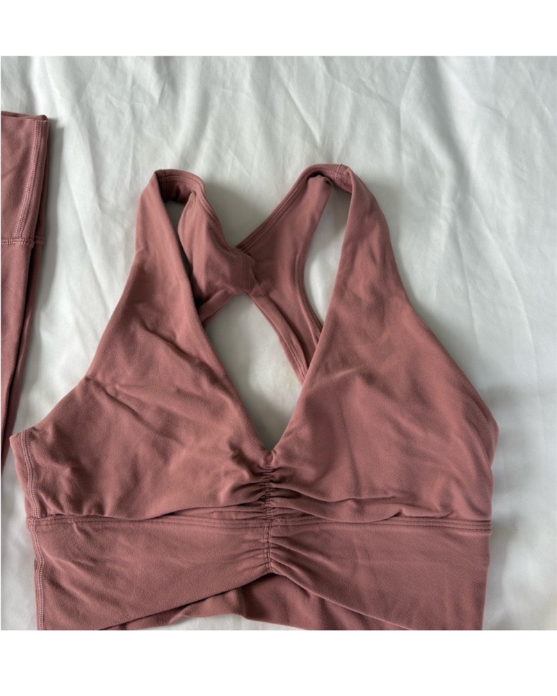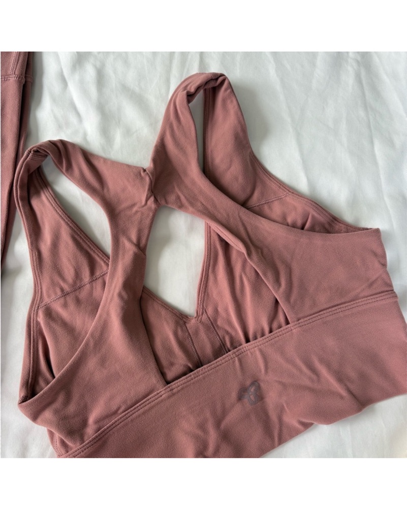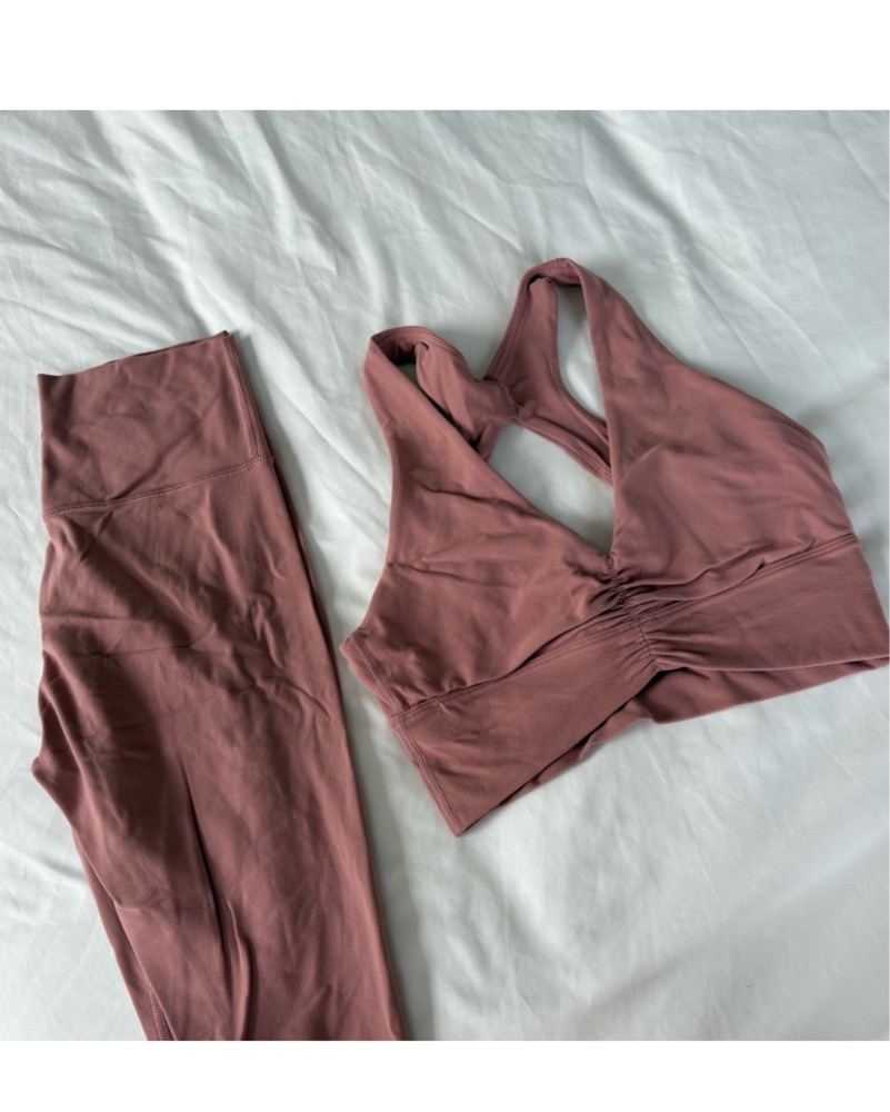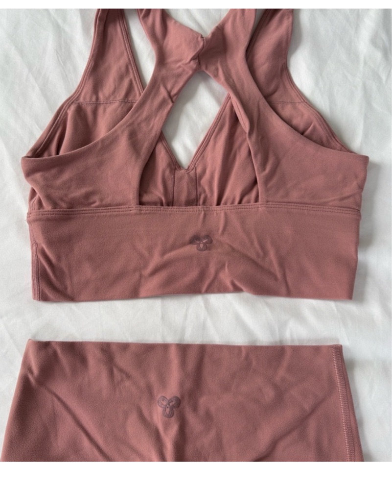 Aritzia mauve/pink athleisure set. perfect for lounging, walking, or any workouts. high-waisted leggings and supportive sports bra - both size small. available for buy or rent!