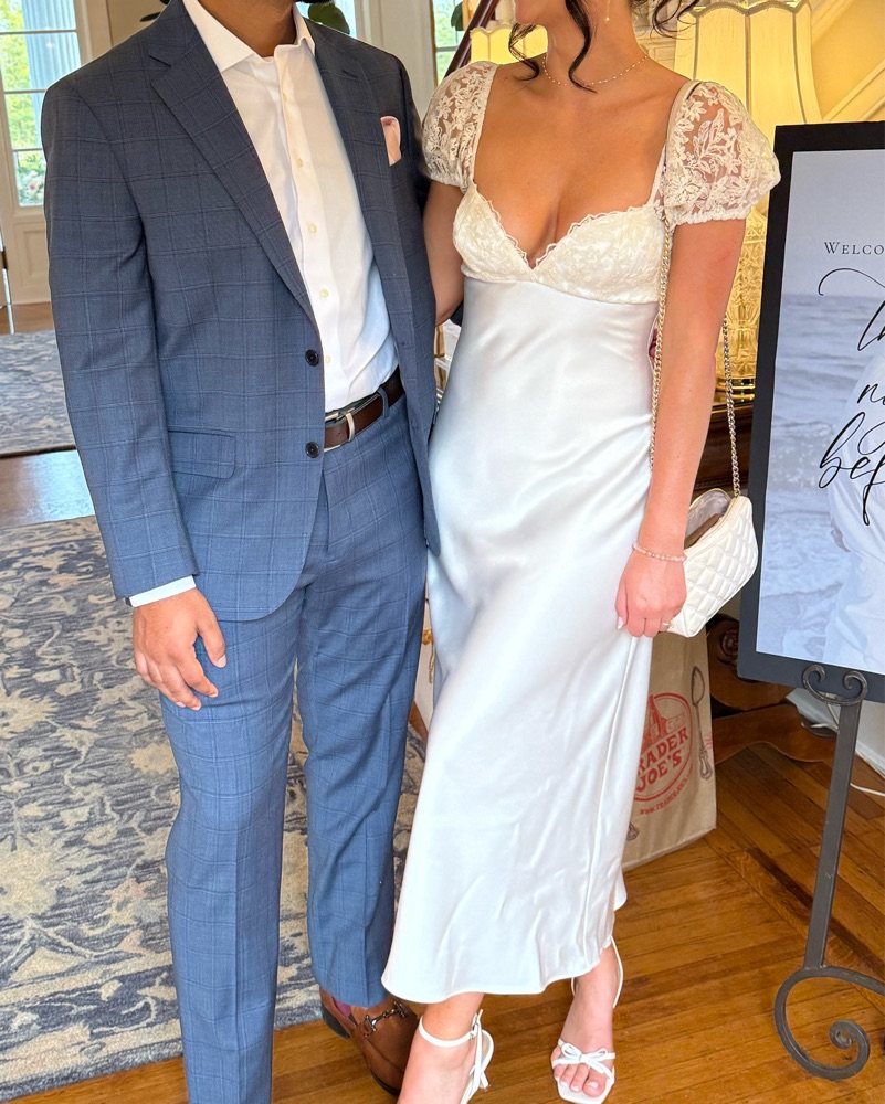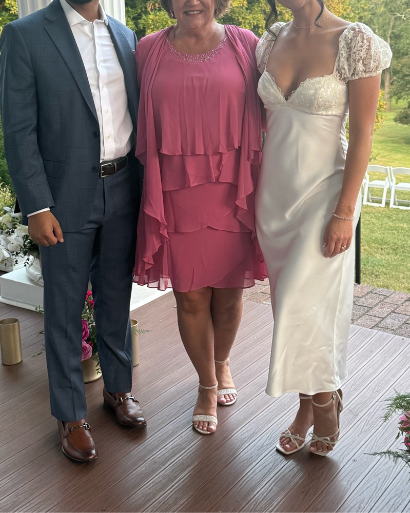 White midi dress with lace back. Only worn once for two hours. Typically I wear a small, but this dress fit perfect