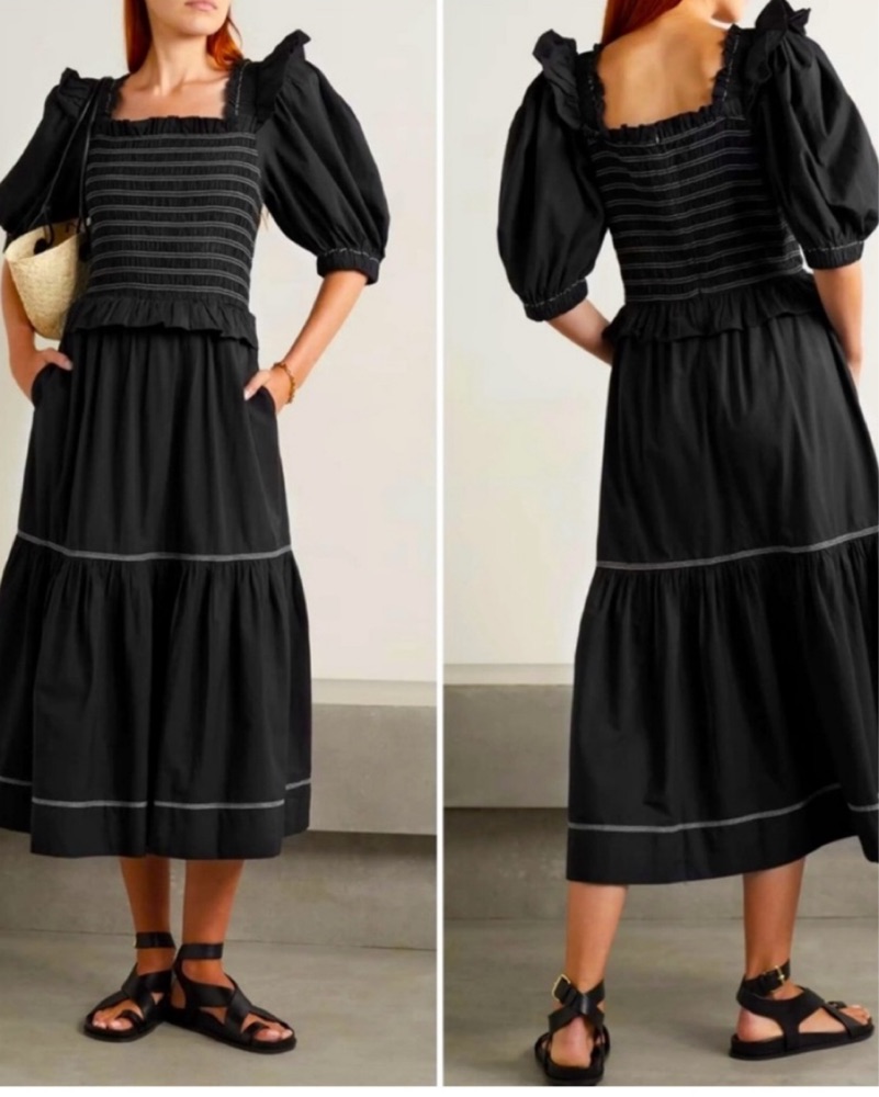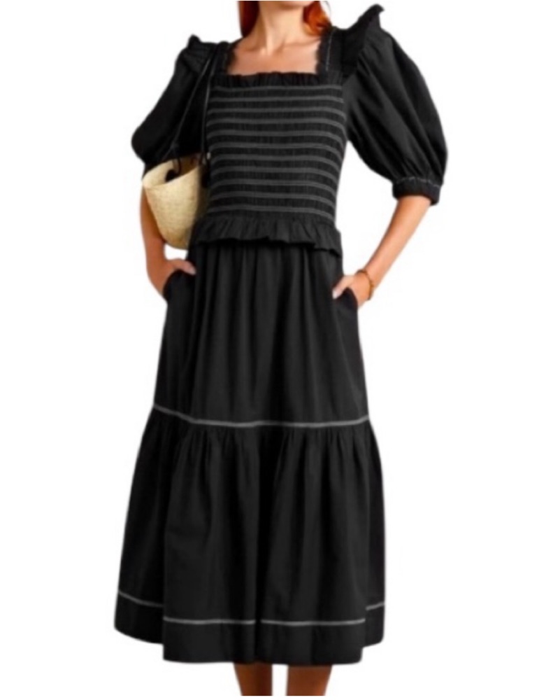 SEA Sibylle Ruched Puff Sleeve Tiered Midi Dress Ruffle. Condition: Excellent(no flaws)