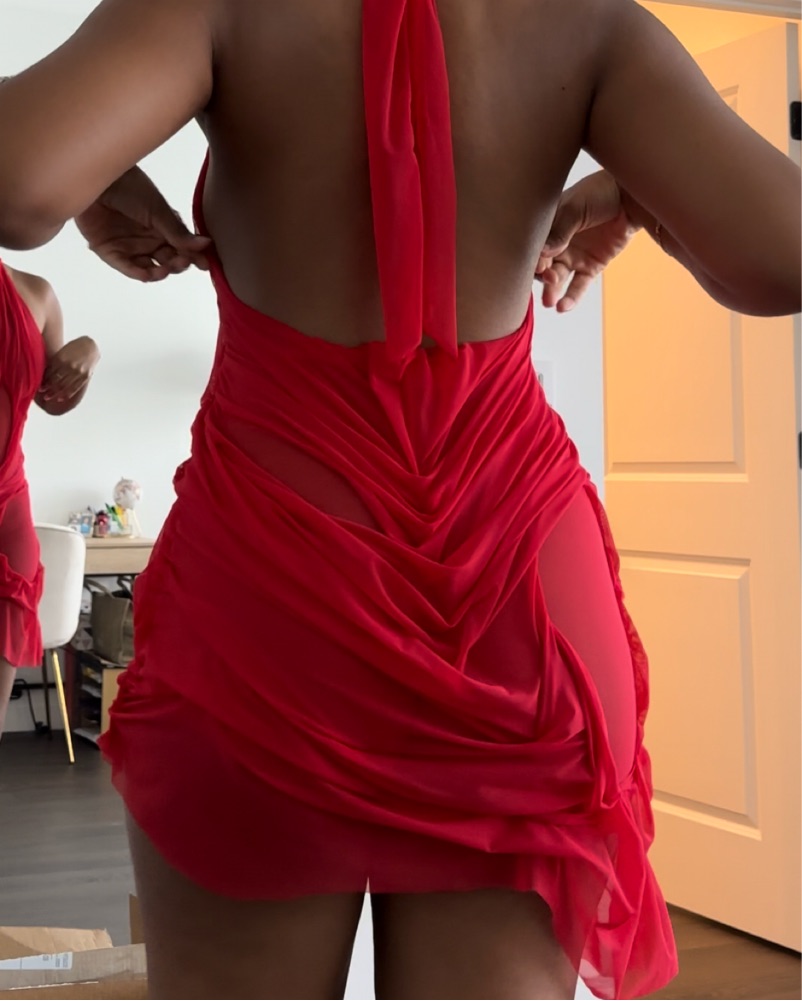 DI PETSA HALTERNECK WET LOOK MINI DRESS RED Size 4-6 fits small- medium • Slim fit