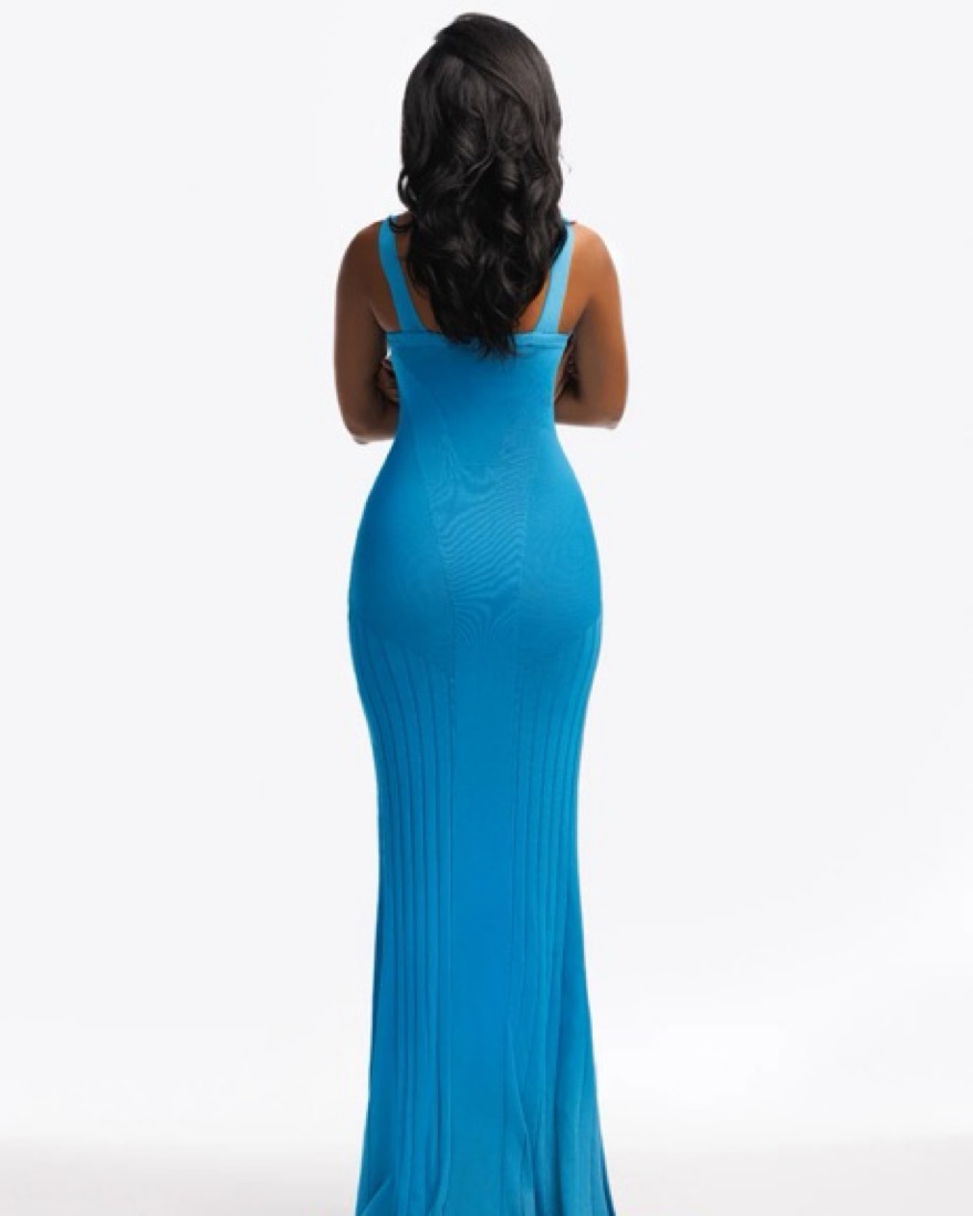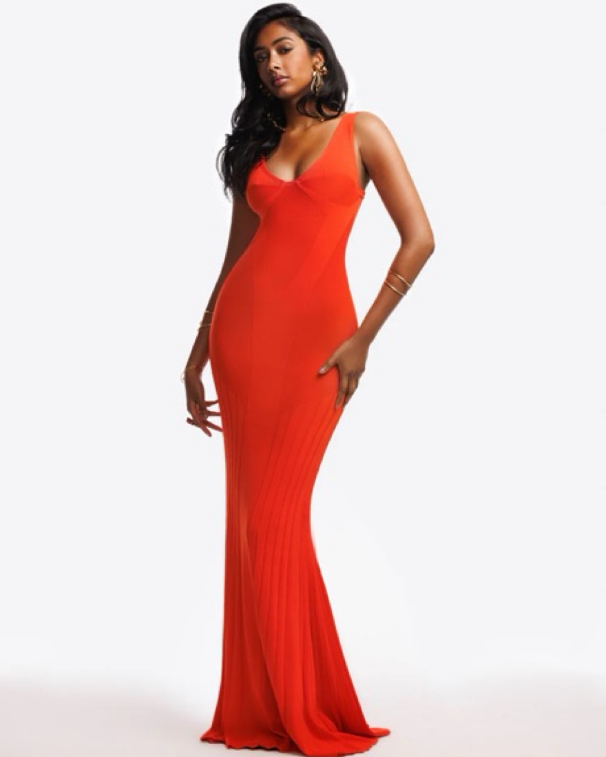 Sarai's detailed lines illustrated on the lightweight knit and finished with a scalloped flared hem, she effortlessly highlights the beauty of a woman's body.