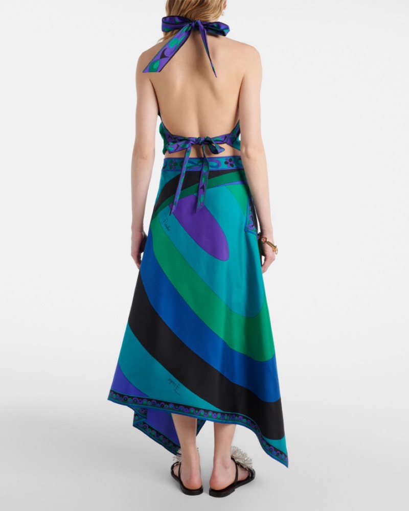 All my items are AUTHENTIC: Emilio pucci cigni print oceana verde halter top (backless, adjustable tie on neck and waist) suits xs and s flexible fit. SKIRT NOT INCLUDED - only top!