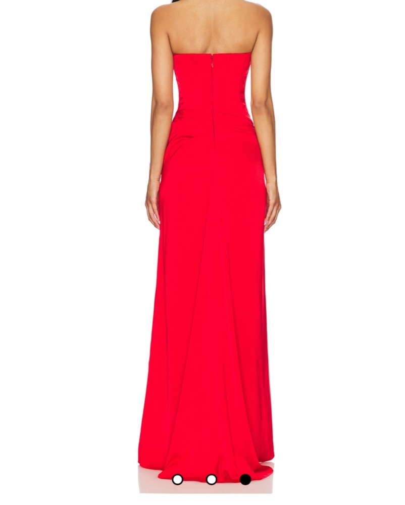 Jake Gown by NBD in red purchased from Revolve. Size small, never worn. Perfect for wedding guest! Dress features a corset bodice and a long leg slit with floral decal