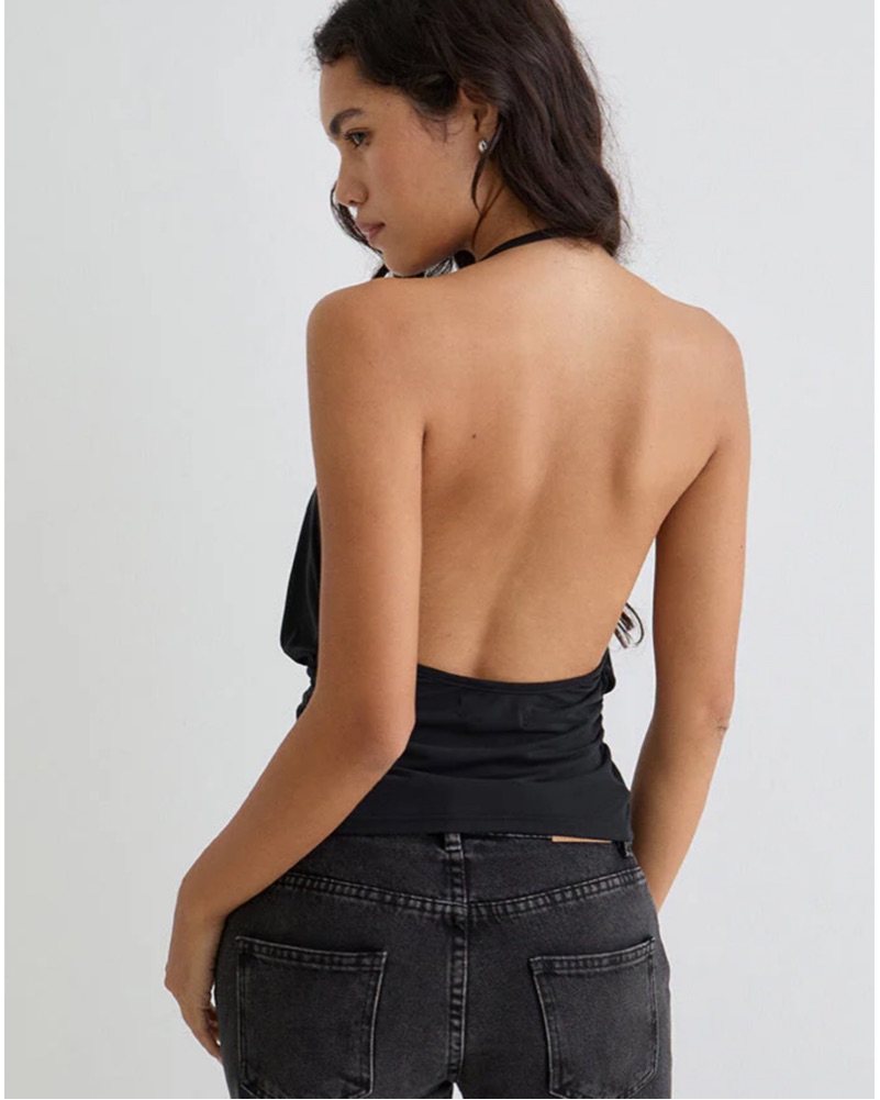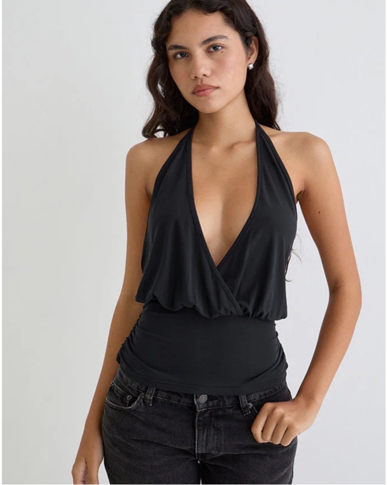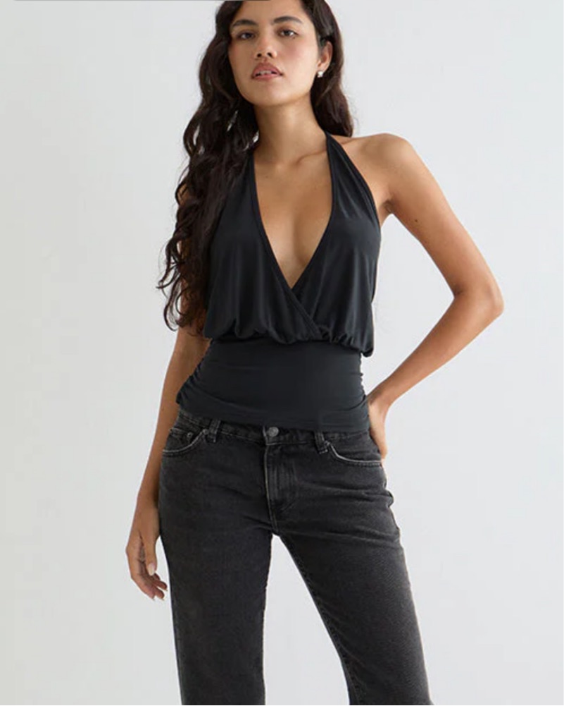 This chic and sophisticated bodysuit is perfect for a night out with friends or a special date. Pair it with the high-waisted jeans for a sleek and stylish look.